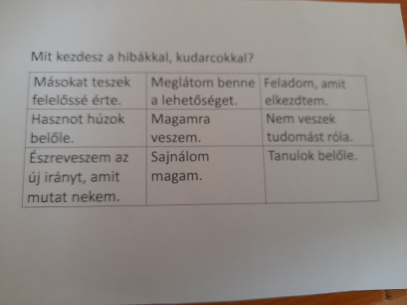 7-Mit kezdesz a hibákkal, kudarcokkal? táblázat kitöltése
