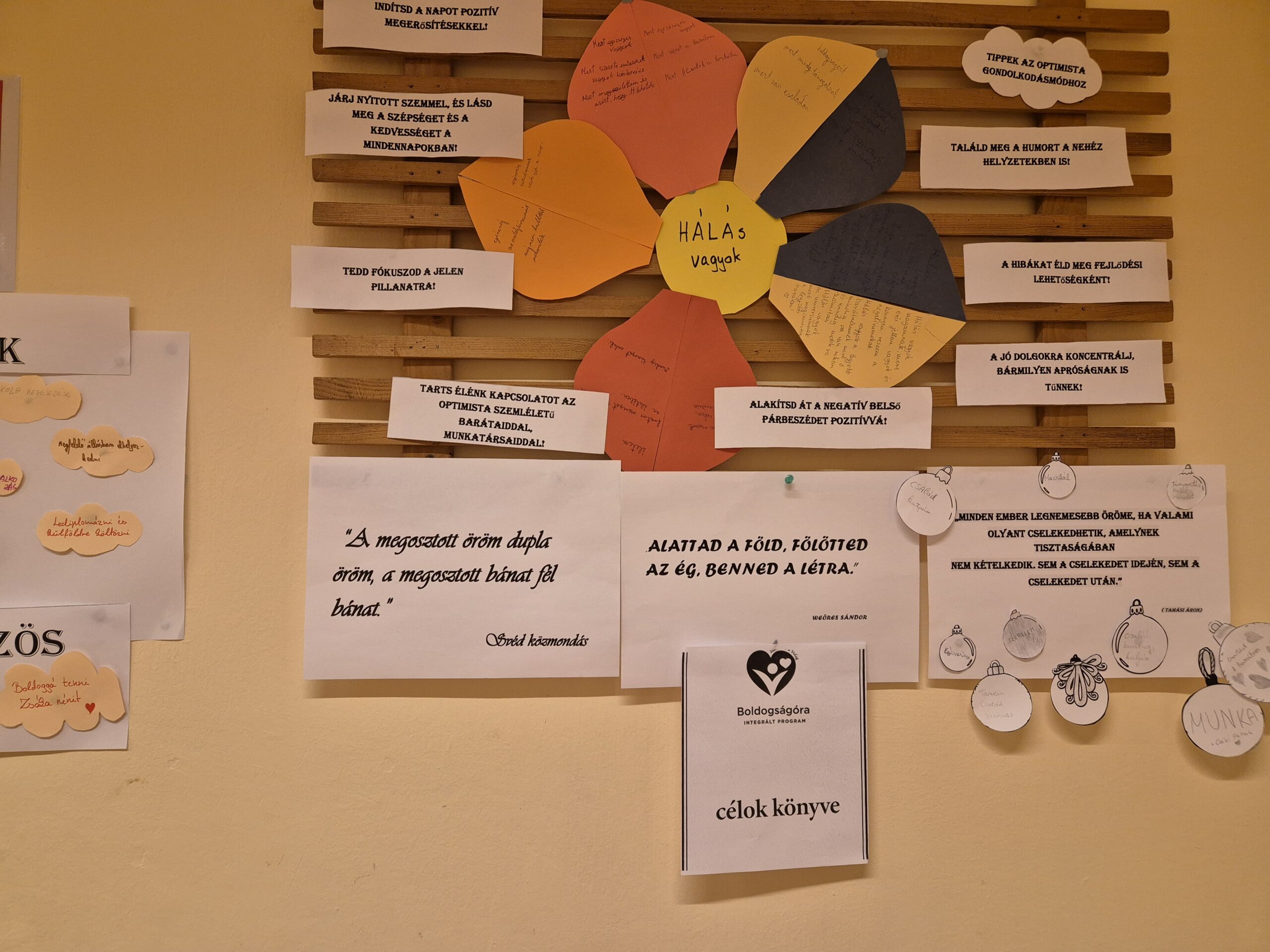 Az Aranyoskák csoport Boldogságóra foglalkozásán a Célok kitűzése és elérésének témájával foglalkoztunk. Az óra elején közös beszélgetés keretében gondolkodtunk arról, mit jelent a tartós boldogság, és miért fontos, hogy legyenek rövid és hosszú távú céljaink. A tanulók példákon keresztül ismerték fel, hogy a célok eléréséhez vezető út tudatos döntésekből és apró lépésekből áll. Mindenki egyetértett azzal, hogy néha a célhoz vezető út fontosabb, mint maga a kitűzött CÉL.
