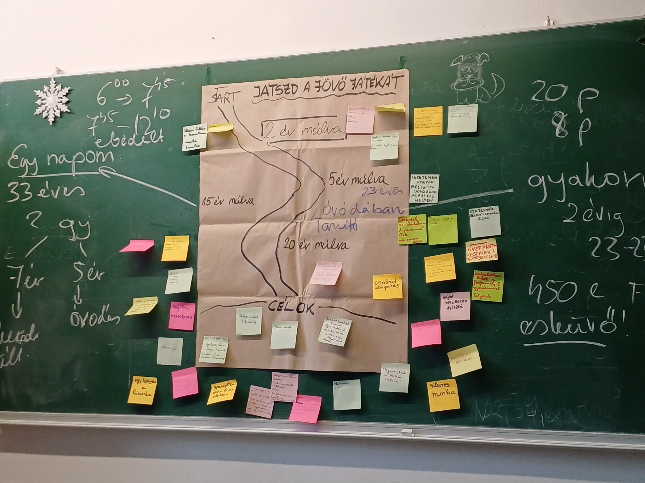 Mindenki a saját elképzeléseit írja fel egy post it-re amit felrakunk az útvonalra.