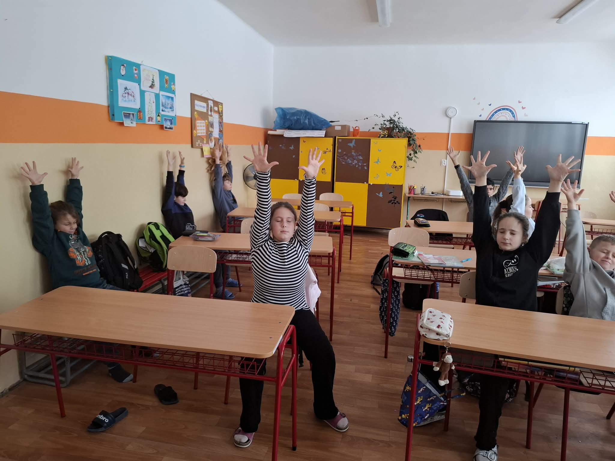 A boldogságóra legérdekesebb része a hegy meditáció volt. Ez a gyakorlat segít megnyugtatni az elmét nehéz napokon, feltöltődni a tanulás közti szünetekben, valamint ellazítani és kinyújtóztatni a testet. Könnyen alkalmazható az iskolában és otthon is.