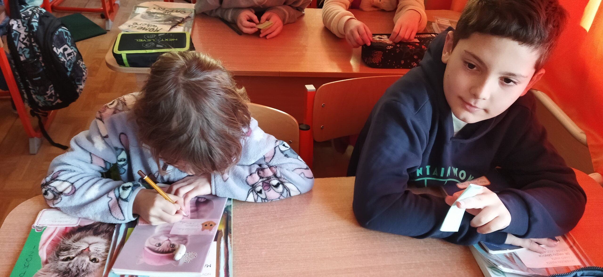 Zenehallgatással keztük az órát. Beszélgettünk az Újévi szokásokról, arról, hogy ilyenkor megpróbálunk megújulni, változtatni rossz szokásainkon, erősíteni ami jó. Mindenki írt egy-két fogadalmat, amit megpróbál megvalósítani a tanév végéig. Ezt egy ládikóban gyűtöttük össze. Júniusban visszatérünk rá. Megismerkedtünk néhány közmondással, megbeszéltük a jelentésüket. Elmondták saját tapasztalaikat egyik- másikhoz kapcsolódóan. Végül énekeltünk és táncoltunk. Egyik nagy kedvencünk a „Van nekem egy álmom..”