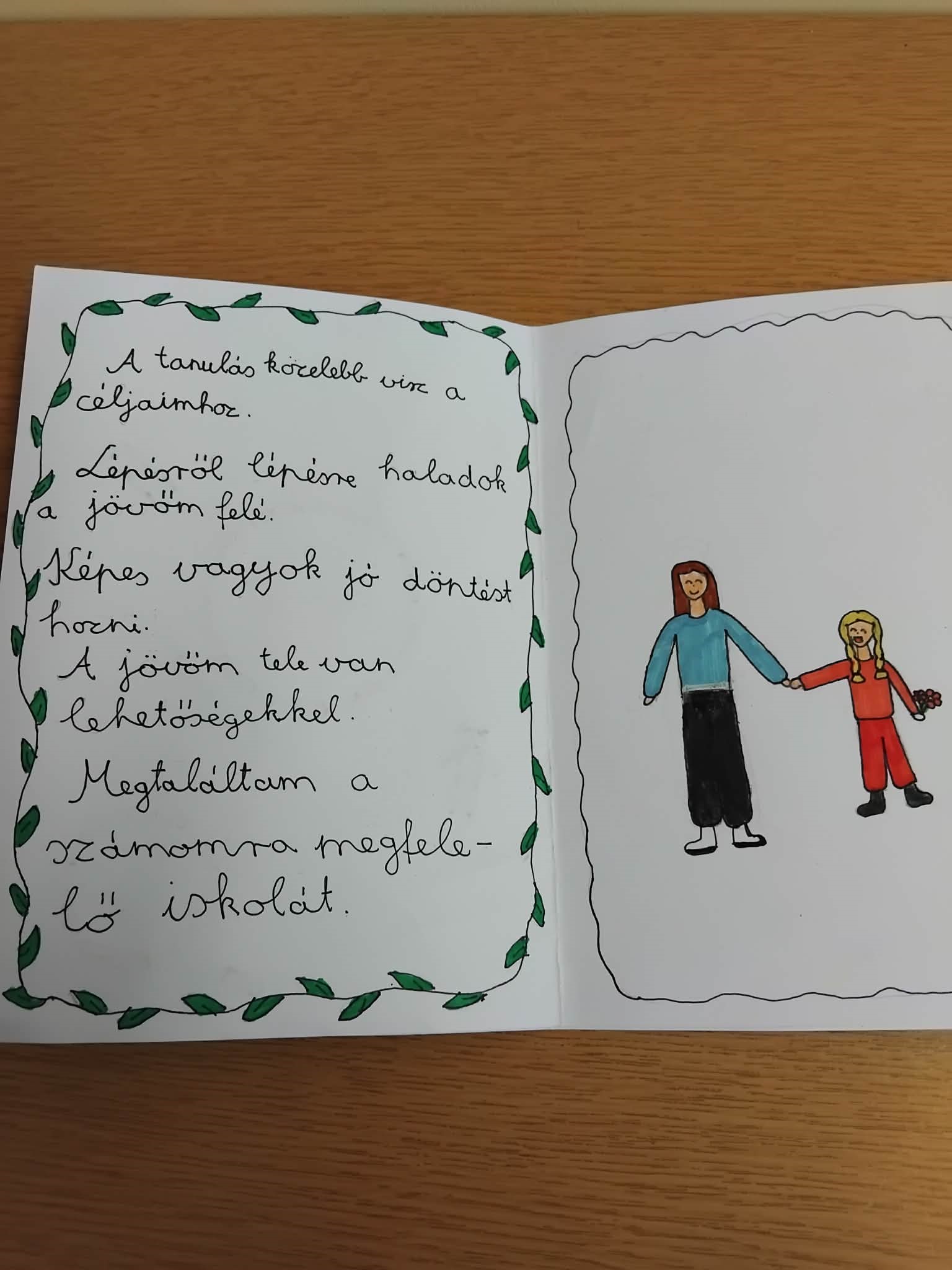 Januárban, az új év lendületével indítva különleges közös munkába kezdtünk a 7. b osztály tanulóival: megalkottuk a „Célok könyvét”. Beszélgettünk arról, milyen közeli és távolabbi céljaik vannak, hogyan vezethet az út ezek megvalósításához, és milyen ereje van a bátorító, motiváló mondatoknak a mindennapokban. A közös gondolkodást követően lelkesen láttunk neki a saját könyvek elkészítésének. A munka több tanórán át tartott, sok odafigyelést, kreativitást és kitartást igényelt, de a befektetett idő meghozta gyümölcsét: minden tanuló egy igazán személyes, értékes alkotással gazdagodott, amely remélhetőleg hosszú távon is emlékezteti őket céljaikra és önmagukba vetett hitükre.