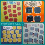 Céljainkat két feladatlap segítségével listáztuk. Az első lapon mondatkezdések segítettek minket: Megpróbálom…; Többet fogok tenni…; Kevesebbet fogok csinálni…; Szeretnék lenni… A másik feladatlapon 3-4 célt tűztünk ki magunknak a 2025-ös évre, majd ezeket a rajzos-írásos céljainkat kivágtuk és plakátot készítettünk belőlük.