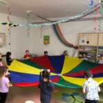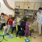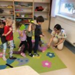 A még jobb megértés érdekében játszottunk is. A csoportból mindenki választhatott egy nagyon kedves játékdarabot, amivel nagyon szeret mindennap játszani. Ezután egymás mögé álltunk és terpeszben tartottuk a lábainkat. Mindig a leghátsó ember mászott előre a lábak között a vágyott játék felé, ami a sor elején volt a földre helyezve. Megtanultuk mennyire nehéz lehet az út, amivel elérjük, amit szeretnénk. Azt is, hogyha segítünk egymásnak, akkor sokkal könnyebb az utunk. Jókat kacagtunk játék közben, és talán kicsit könnyebben ment a megértése ennek a témának. Ahogy elfáradtunk, visszareppentünk az óvodába és relaxáltunk egy kicsit a végén.