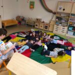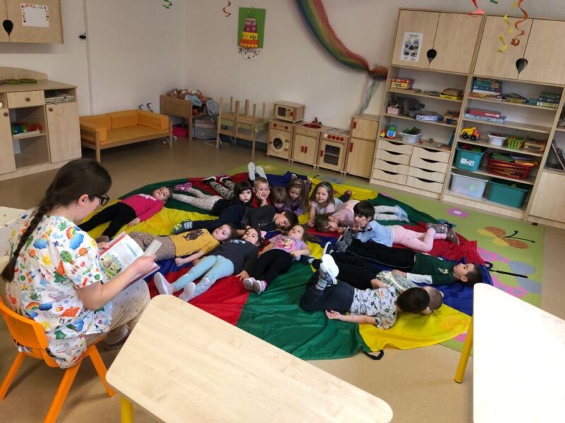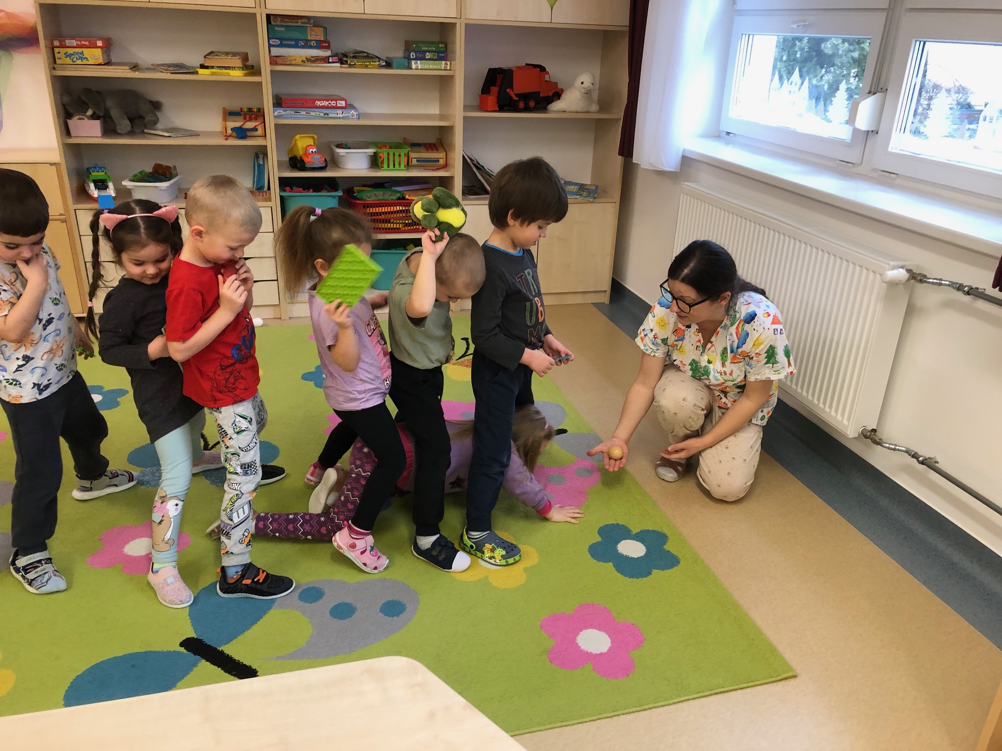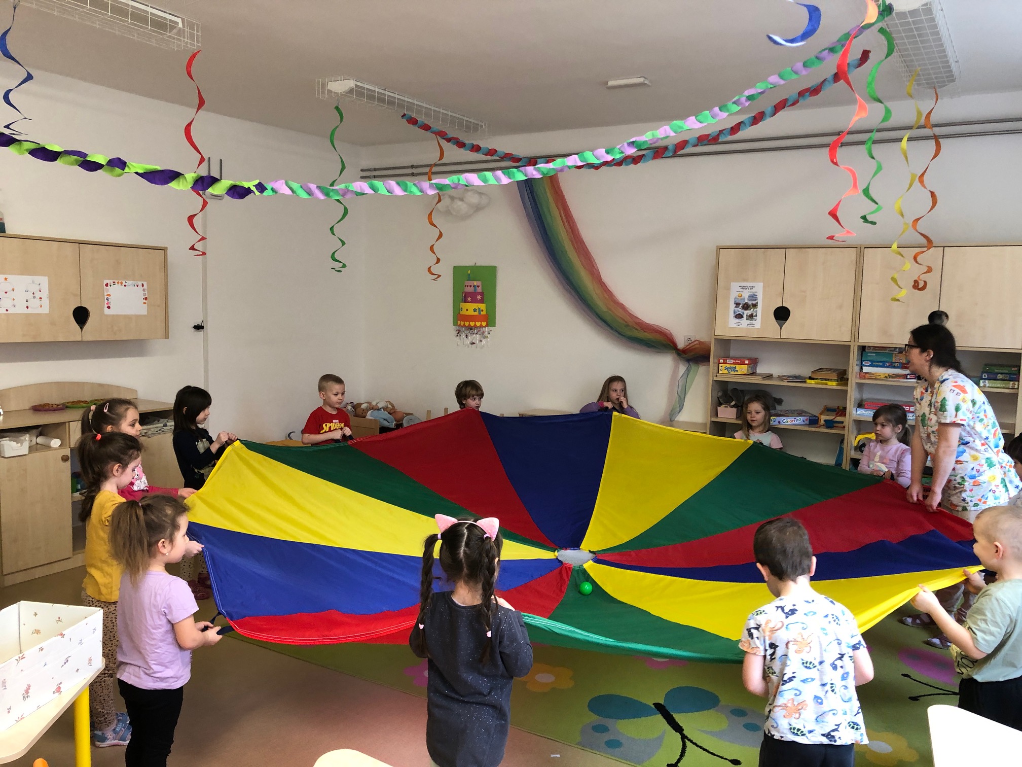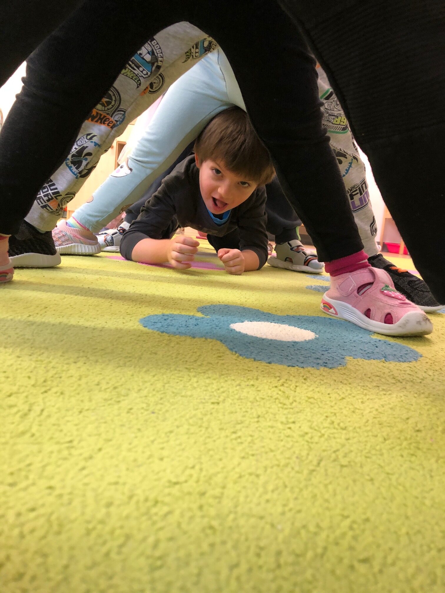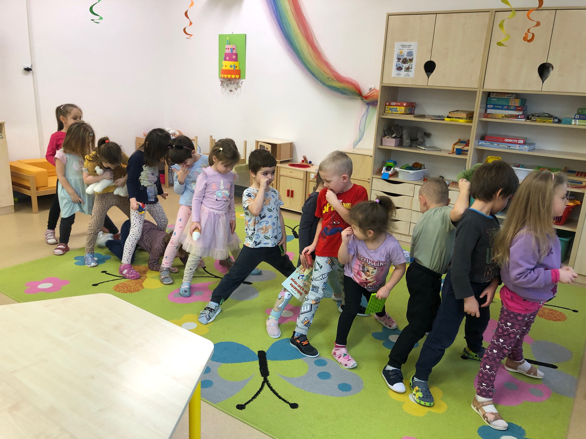 A még jobb megértés érdekében játszottunk is. A csoportból mindenki választhatott egy nagyon kedves játékdarabot, amivel nagyon szeret mindennap játszani. Ezután egymás mögé álltunk és terpeszben tartottuk a lábainkat. Mindig a leghátsó ember mászott előre a lábak között a vágyott játék felé, ami a sor elején volt a földre helyezve. Megtanultuk mennyire nehéz lehet az út, amivel elérjük, amit szeretnénk. Azt is, hogyha segítünk egymásnak, akkor sokkal könnyebb az utunk. Jókat kacagtunk játék közben, és talán kicsit könnyebben ment a megértése ennek a témának. Ahogy elfáradtunk, visszareppentünk az óvodába és relaxáltunk egy kicsit a végén.