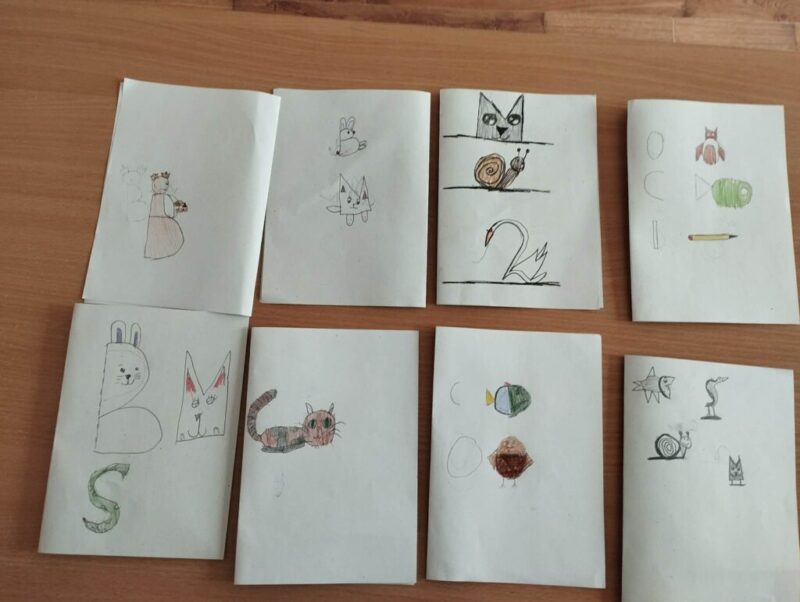 Megtekintettük a A ceruza meg az egér illetve a Varázsceruza című mese egy részét. Megkerestük mi a közös bennük. Beszélegettünk róla, hogy mi okoz nekik örömöt a mindennapokban. A bátrabbak a Ceruza napja alkalmából betűrajzokat készítettek. A többiek olyan dolgokat rajzoltak a „varázsceruzáikkal”, amik a mindennapokban apró örömöket okoznak számukra.