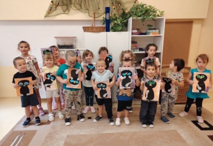 Megnézhették a Cirmi óvodába megy című mesét, majd pedig ők maguk is macskává változtak és énekes körjátékokat játszottunk. Hiszen az ének és a mozgás együttese nagyon pozitív élményt ad a gyermekek számára, így mindenki boldog volt. Majd a nagyobb gyermekek el is dramatizálták a mese mondanivalóját. Másnap elkészítették saját magukat cica formájában, és elmesélték mi volt a legjobb óvodai élményük. A teremben elhelyeztem egy hálafát, amire egész hónapban mindennap kiteheti a jelét az a kisgyermek, aki azon a napon valamiért nagyon hálás volt, így fókuszálva tudatosan a figyelmet az apró, pozitív történések észrevételére, megalapozva a gyermekek optimista látásmódját.