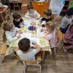 Ezt a tevékenységet Boldog Dóra megjelenése indította be. Egyszerű kis bábjáték során felvidította Kék szemű Mackót, aki sokat szomorkodott. Együtt énekeltek és táncoltak, megtáncoltatták a gyerekeket is (Bagdi Bella Ha boldog vagy kezdetű dalára). Aztán segítségükkel különböző arckifejezéseket ábrázoló emojikat válogattunk, rendezgettünk. Gesztenyékből óriási mosolygós arcot raktunk ki. Majd minden gyermek elkészítette a maga varázsszemüvegét, amely abban segített neki, hogy még színesebbnek láthassa a világot és mindenben megláthassa a jót.