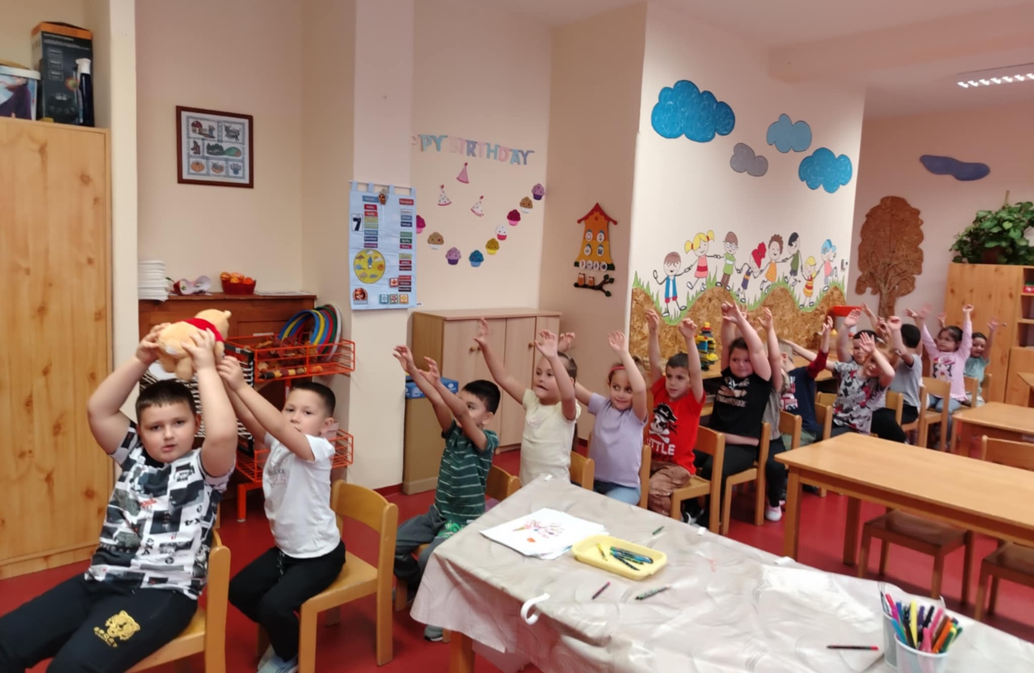 A játék után meghallgattuk Bagdi Bella: Ha boldog vagy… – című dalát. A játékos mozdulatokat követve mindenki felszabadultan és jókedvűen énekelte a dalt.