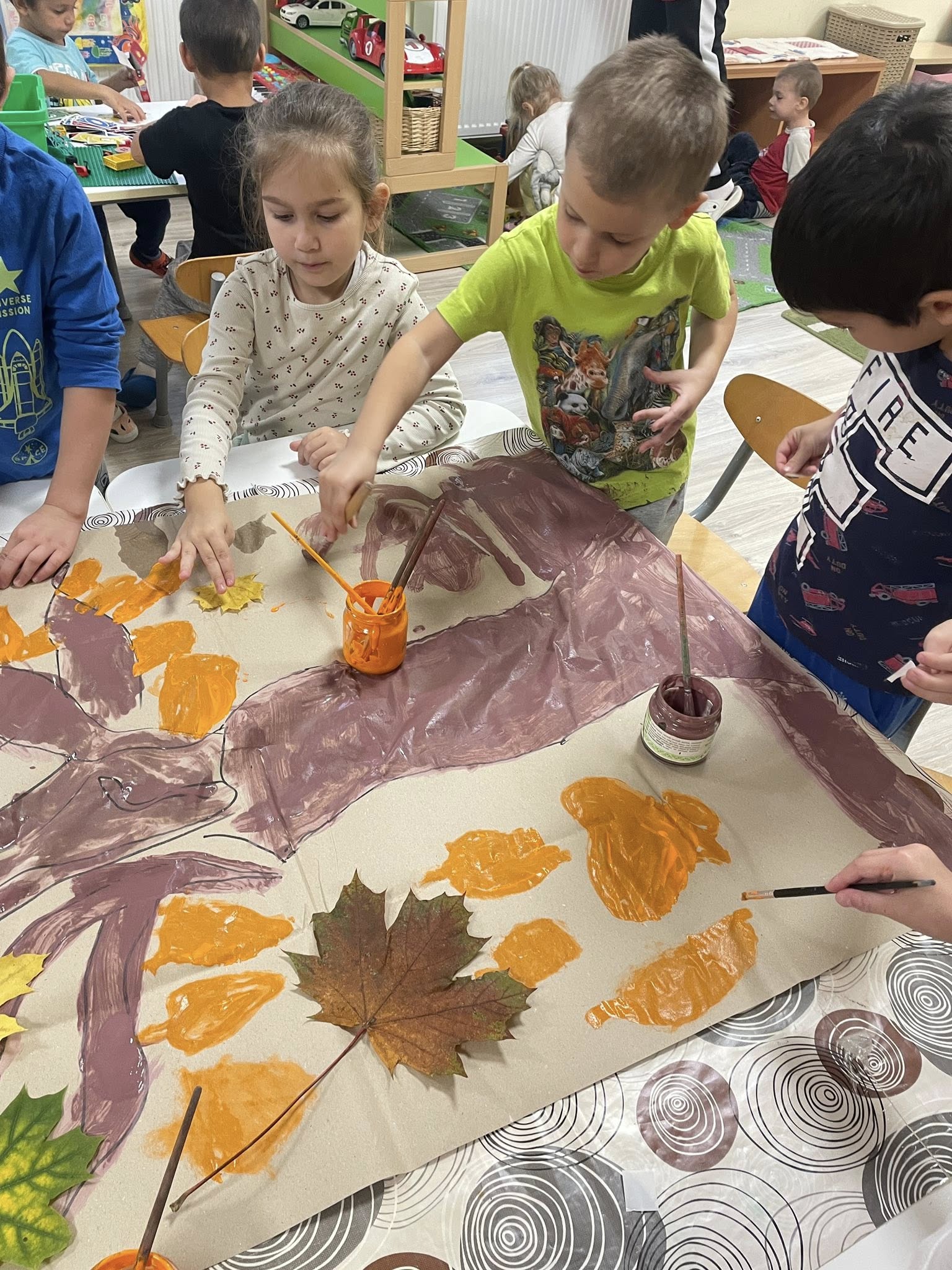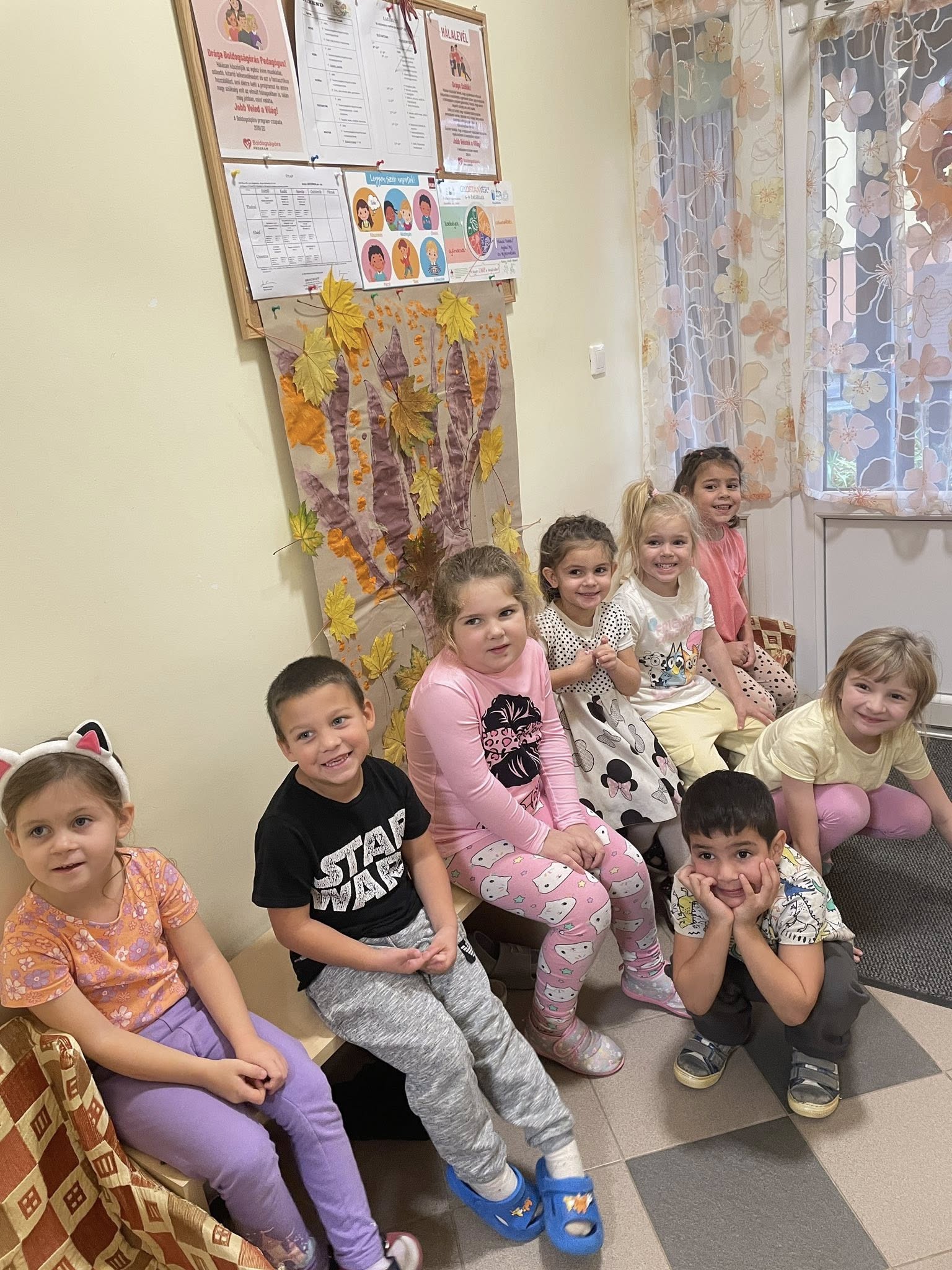 Heti témánk az ősz szépségeinek megfigyelése. Fontos a gyerekek meglássák az őszben is a szép dolgokat, optimistán lássák a természet átalakulását is. Nagyon sok időt töltünk a szabadban, sokat kirándulunk, lehullott faleveleket gyűjtöttünk. Hét zárásaként elkészítettük közös őszi fánkat, amelyre a gyűjtött falevelekből is ragasztottunk, közben mindenki mondott magáról, és a másikról egy pozitív tulajdonságot.