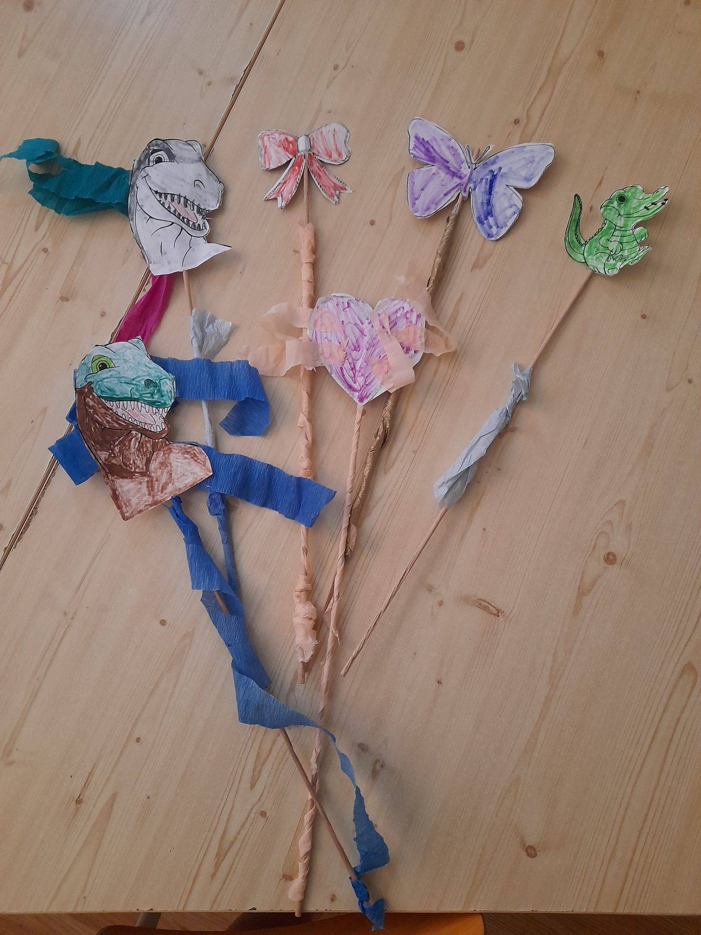 A varázspálcák mindenkinek egyedileg készültek el, ugyanis mindenkitől megkérdeztem , hogy mit szeretnének a varázspálca végére. Volt dínó, traktor, csillag, pillangó, krokodil. Saját elképzelés alapján díszíthették fel a varázspálcákat. Aztán jöhetett a játék. Varázsigék használatával milyen jó dolgokat tennél? Mit varázsolnál magadnak? Mit varázsolnál másoknak?