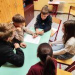 Az osztállyal a társas kapcsolatok fontosságáról beszéltünk. Mindenkinek megvan a saját feladata egy csoportmunka feladatban. 3 csoportot alkottak a gyerekek, majd küldönböző kérdésekre kellett válaszolniuk. Minden helyesen megválaszolt kérdés után a táblára felrajzolt pályán léphettek előre. Mielőtt elkezdtük a játékot, különböző szerepeket, feladatokat kaptak a tanulók, amiket a csoportmunka végéig kell alkalmazniuk, végrehajtaniuk. Volt aki olyan szerepet kapott, amivel előrevitte a csapat munkáját, de olyan is volt, akinek a hátráltatás volt a feladata. Ezután megbeszéltük, hogy csak akkor működik a csoportmunka, ha mindenki aktívan kiveszi belőle a részét.