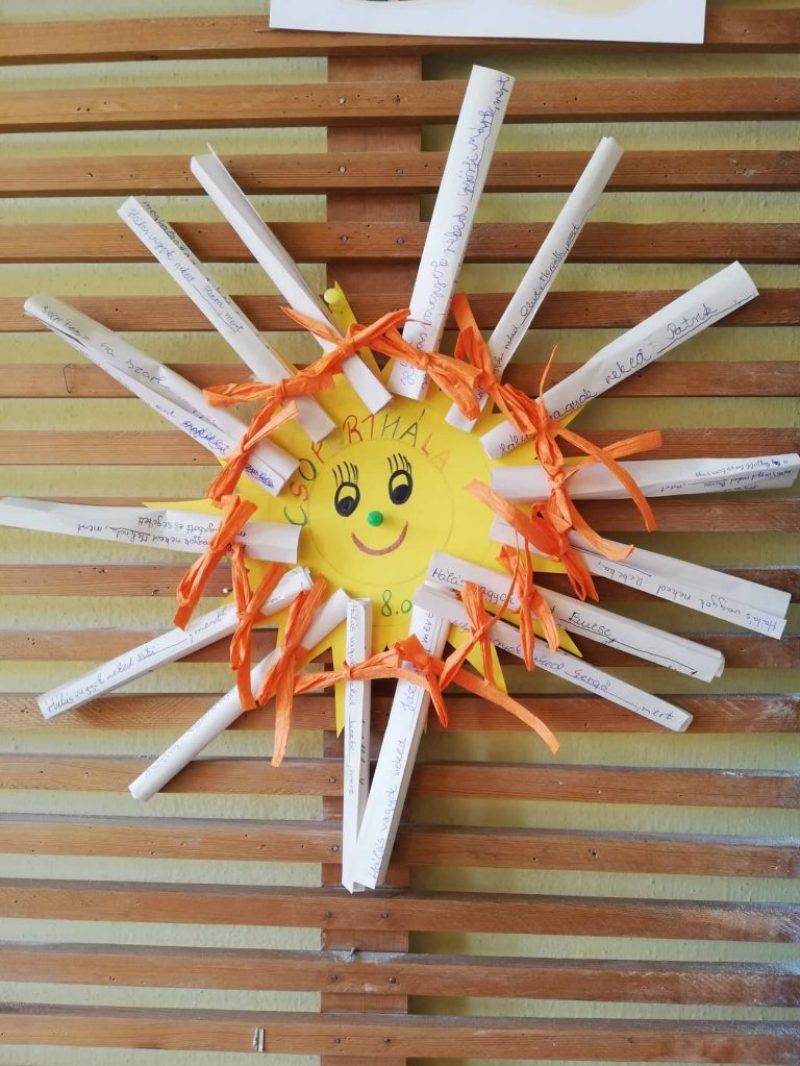 Ebben a tanévben a 8. osztállyal folytatom a tavaly kezdett boldogságórákat. Sajnos az osztály az utolsó évre már a 4. osztályfőnökét kapta, tanulók mentek el tőlük. Sok változás érte őket. A hála kapcsán nehéz volt megtalálni, hogy az iskolai életükben, a mindennapjaikban újra megtaláljuk azokat a dolgokat, melyekért hálásak lehetnek. Több órán is foglalkoztunk a témával, sokat beszélgettünk. A hangulatot nehezen sikerül jobbá, pozitívabbá tenni. Egymást erősítve próbálunk tovább „dolgozni”. Így a hála témakörében egymásban kerestük a „kapaszkodót”. Csoporthálát készítettünk, amivel önbizalmukat igyekeztem erősíteni és a hónap végére jó volt látni újra mosolygós arcukat.