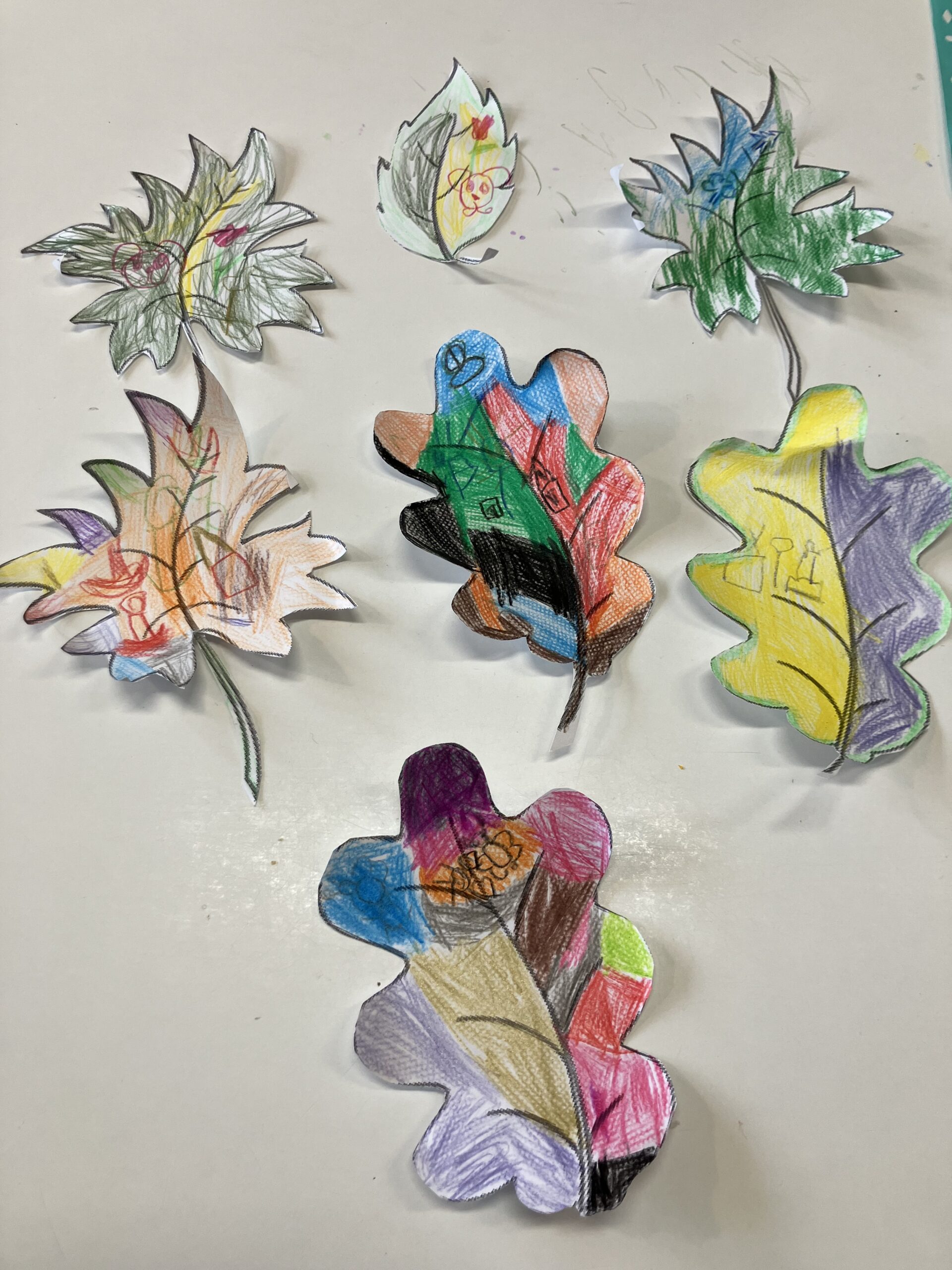 A foglalkozások második felében előre kivágott levél mintákat színeztek ki, és a saját jelükön kívül belerajzolták annak a csoporttársnak a jelét is, akinek hálásak. A foglalkozás alatt a gyerekek „A Hálafa története” című mesét hallgatták meg.