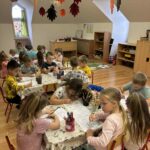A gyerekekkel az első foglalkozáson a Hála jelentésével, gyakorlásával foglalkoztunk. Közösen összeszedtük, hogy kinek , kiknek, minek vagyunk hálásak nap, mint nap. A gyerekek ügyesen elmondták, hogy hálásak a szüleiknek, nagyszüleiknek, testvéreiknek, a barátaiknak, a napnak, esőnek, a víznek, növényeknek, állatoknak. Megbeszéltük, hogy ki milyen módon szokta a háláját kifejezni. Családtagjaik, barátaik irányába: öleléssel, rajzzal, együtt játszással. Növényeknek, állatoknak: öntözéssel, etetéssel, itatással, sétálással, simogatással, játszással. Ebben a hónapban elkészítettük a saját „hála befőttünket” is. Heteken keresztül az volt a feladat, hogy ha valaki úgy érzi hálás a másiknak vagy az óvónéniknek valamiért, akkor azt lerajzolja és beleteszi ebbe az üvegbe. A hónap végére teljesen sikerült megtöltenünk az üvegünket, amiért én , mint óvónéni is nagyon hálás vagyok, hiszen úgy érzem sikerült megértetni velük a témánk lényegét.