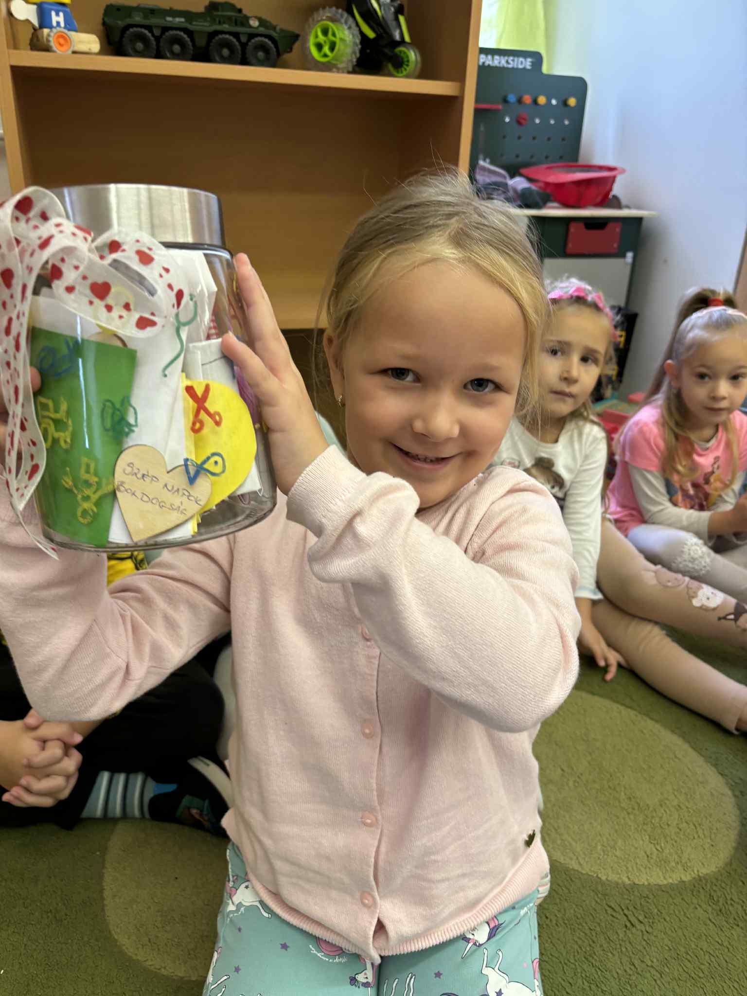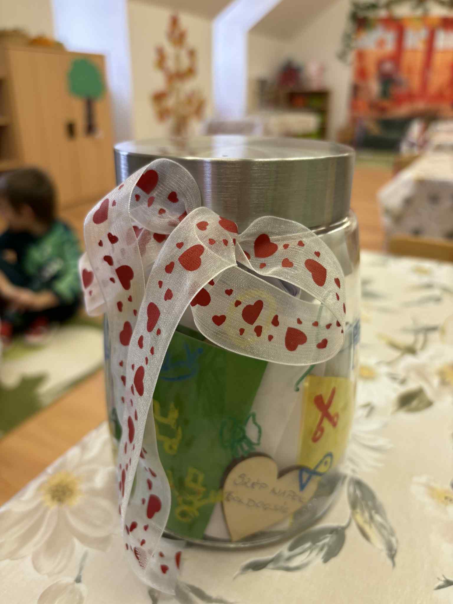 A gyerekekkel az első foglalkozáson a Hála jelentésével, gyakorlásával foglalkoztunk. Közösen összeszedtük, hogy kinek , kiknek, minek vagyunk hálásak nap, mint nap. A gyerekek ügyesen elmondták, hogy hálásak a szüleiknek, nagyszüleiknek, testvéreiknek, a barátaiknak, a napnak, esőnek, a víznek, növényeknek, állatoknak. Megbeszéltük, hogy ki milyen módon szokta a háláját kifejezni. Családtagjaik, barátaik irányába: öleléssel, rajzzal, együtt játszással. Növényeknek, állatoknak: öntözéssel, etetéssel, itatással, sétálással, simogatással, játszással. Ebben a hónapban elkészítettük a saját „hála befőttünket” is. Heteken keresztül az volt a feladat, hogy ha valaki úgy érzi hálás a másiknak vagy az óvónéniknek valamiért, akkor azt lerajzolja és beleteszi ebbe az üvegbe. A hónap végére teljesen sikerült megtöltenünk az üvegünket, amiért én , mint óvónéni is nagyon hálás vagyok, hiszen úgy érzem sikerült megértetni velük a témánk lényegét.