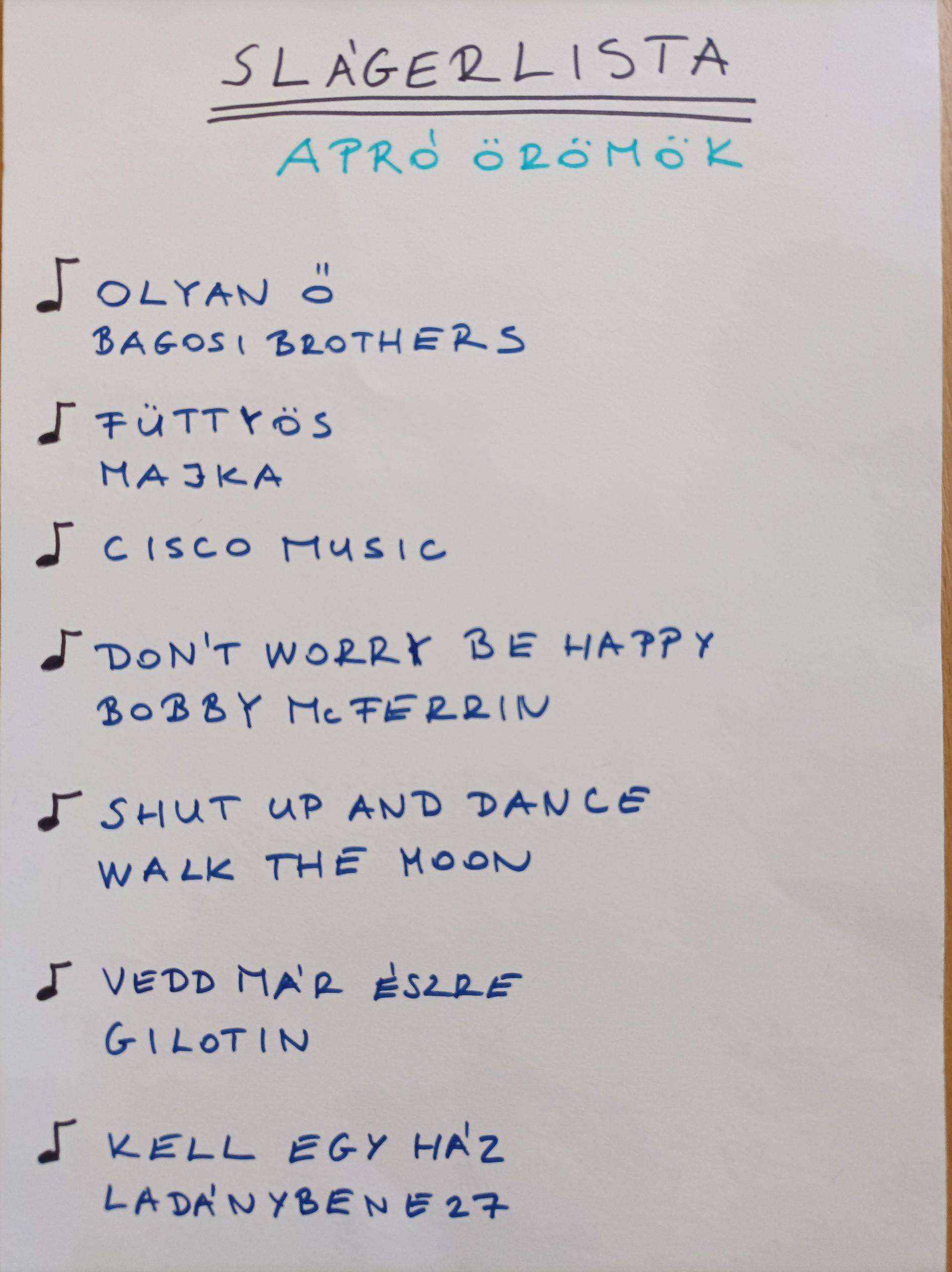 Az „apró örömök”, mint boldogságfokozó technika, kedvelt téma volt az osztályban. A diákok az óra elején megosztották egymással, mik történtek velük, amik aznap örömöt okoztak számukra. Volt, aki annak örült, hogy melegebb lett az idő, volt, aki bár elaludt, mégis elérte a buszt, és volt, akit a finom reggeli derített jobb kedvre. Ezt követően felállították a saját sorrendjüket „Az élet legjobb apró örömei” listán, amelyet aztán kiegészítettek még egy pár saját élménnyel. Ezzel kapcsolatban aztán vállalkoztak, hogy készítenek egy prezentációt, melyet a következő órán bemutatnak. Beszéltünk a különböző helyzetek értékeléséről, az azokhoz való hozzállásunkról. Az erre rávezető kétértelmű ábrák különösen tetszettek a diákoknak. A feltöltendő feladatok közül a dallista elkészítését választotta a csoport, örömmel keresgéltek, válogattak a dalok közül, és persze a saját kedvenc dalok sem maradhattak ki a listából, amelyek őket jobb kedvre derítik.