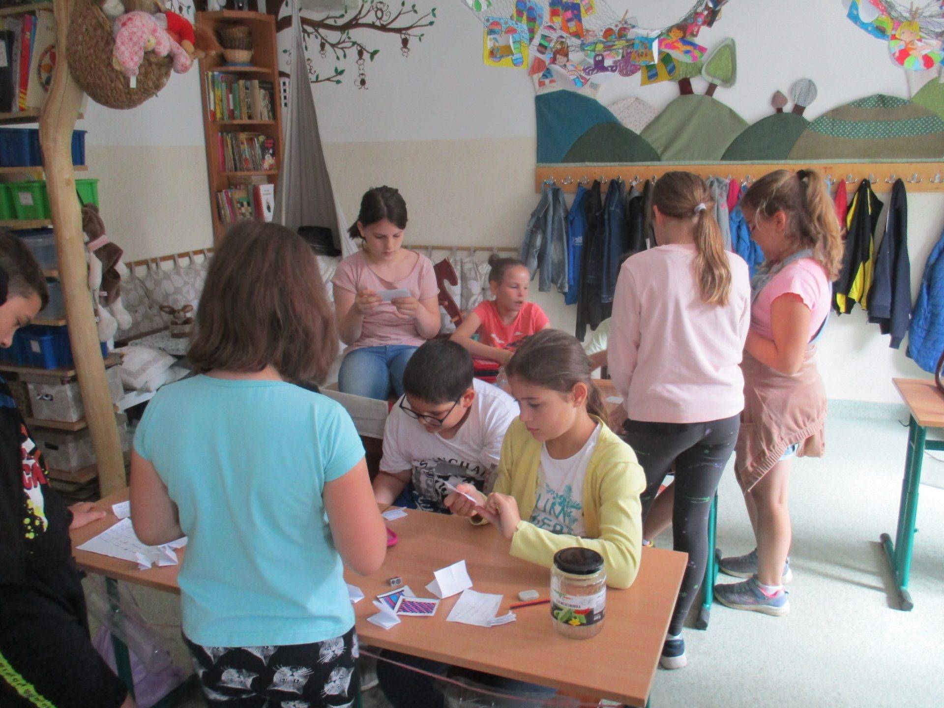 Az így megalkotott csapatok kedves üzenetekkel kedveskedtek egymásnak. Az örömbefőttek gyorsan megteltek. A kis szíveket hazavihették és a nyáron majd, ha hiányoznak egymásnak, elő is vehetik.