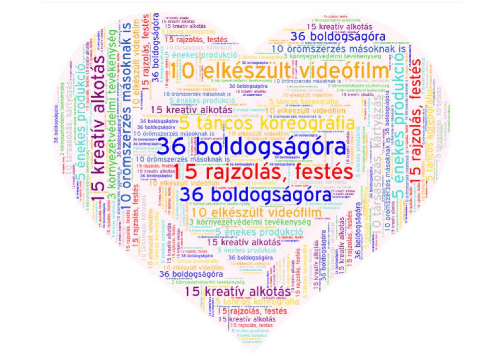 Júniusban számba vettük az egész éves munkát. Sorra kerültek boldogságóráink is. Szófelhőbe rendeztük a számvetésünk. Örömteli összegzésben csoportokat alkottak azok, akik ugyanazt a boldogságórás hónap feladatait kedvelték a legjobban. Megpróbálták a többieket meggyőzni arról, hogy álljon az ő csapatukba. Egymáshoz fűződő viszonyaikat, változásaikat is átbeszéltük. Akivel legkedvezőbben alakult viszonyuk, ahhoz odaülhettek, megköszönhették és feleleveníthették kedves pillanataikat.