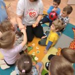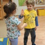 Ebben a hónapban sokat beszélgettünk, játszottunk a Társas kapcsolatok témával kapcsolatban. A boldogságóra keretében részletesebben kibontottuk a témát, és játékos tevékenységeken keresztül érzékeltük, miért jó hogy közösségben élhettünk, vannak barátaink akikkel nagyon sok mindent csinálhatunk, akikre számíthatunk, és ők is ránk. A foglalkozásra a Bagdi Bella: Ha boldog vagy című dallal hangolódtunk. A gyerekek szabadon sétáltak a teremben, és csengő szóra megálltak, a mellettük lévő társuk