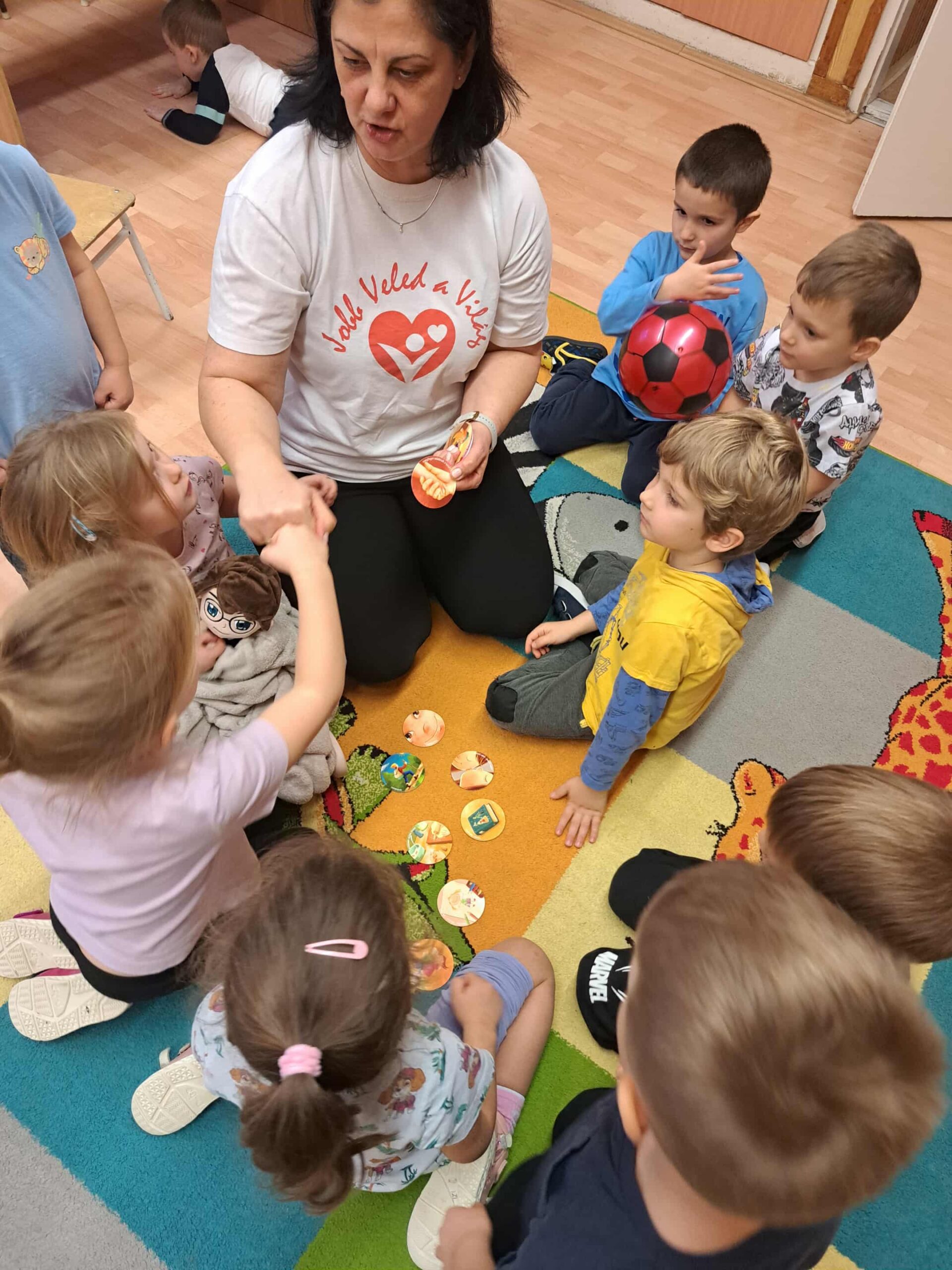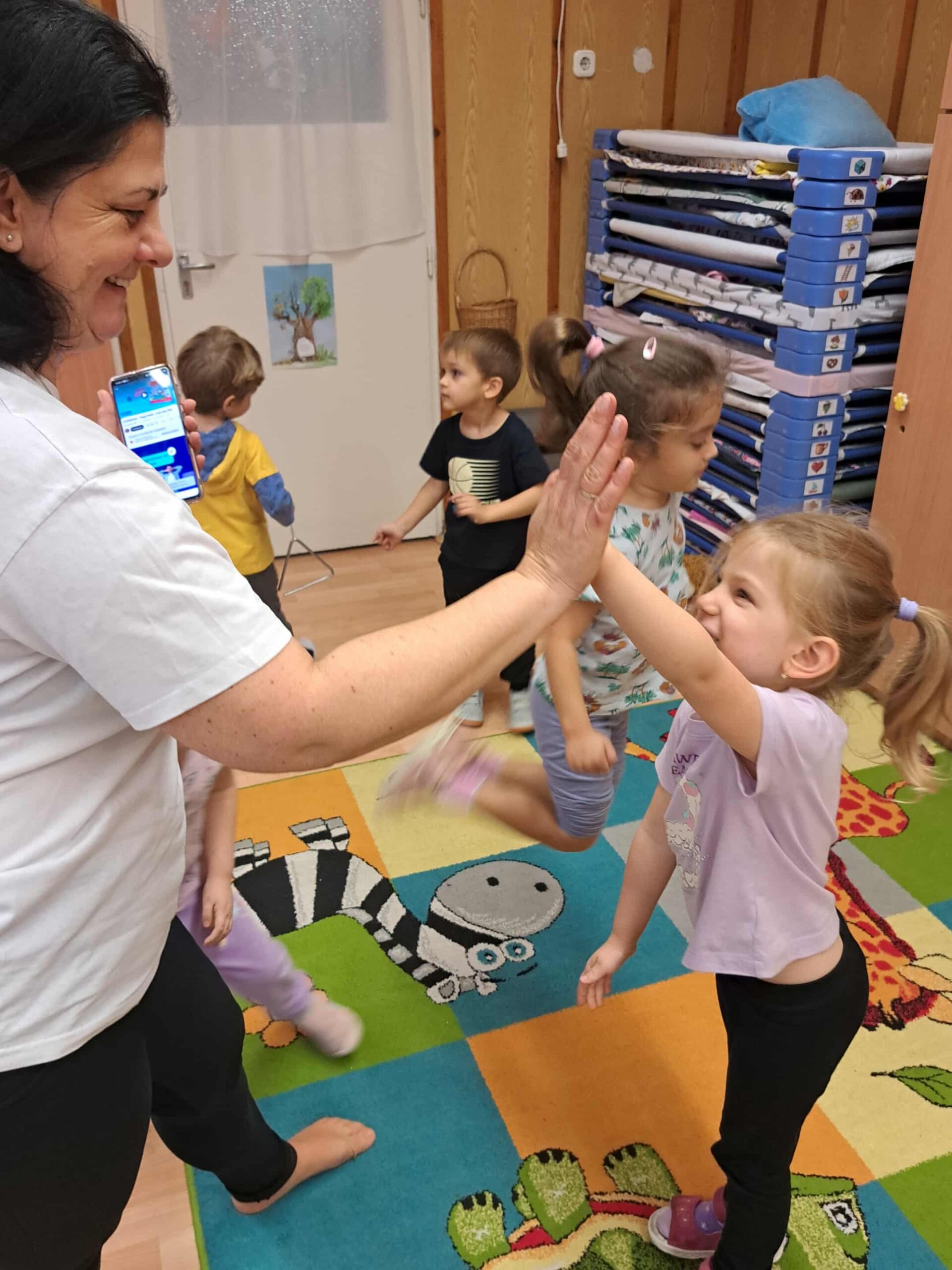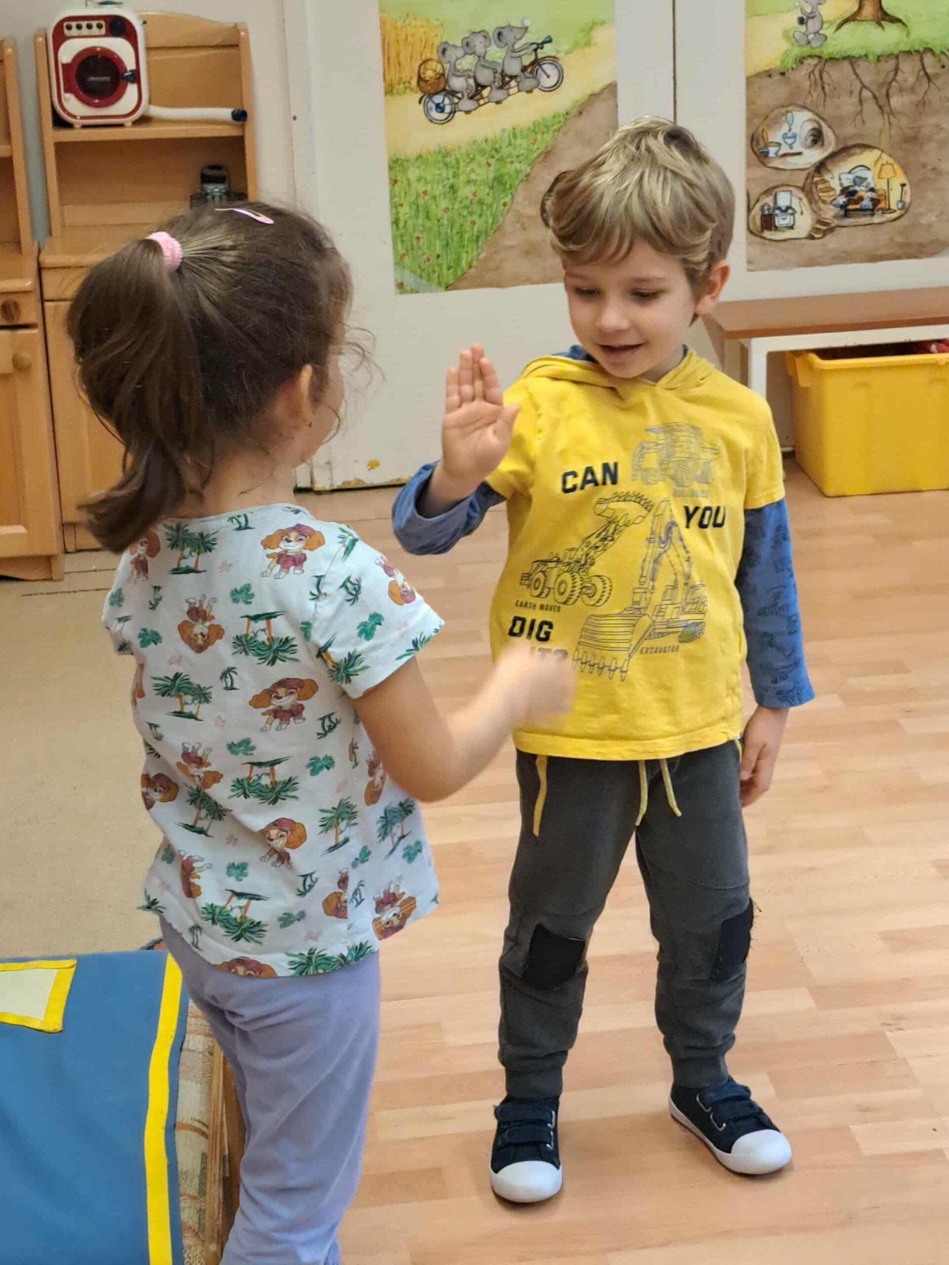 Ebben a hónapban sokat beszélgettünk, játszottunk a Társas kapcsolatok témával kapcsolatban. A boldogságóra keretében részletesebben kibontottuk a témát, és játékos tevékenységeken keresztül érzékeltük, miért jó hogy közösségben élhettünk, vannak barátaink akikkel nagyon sok mindent csinálhatunk, akikre számíthatunk, és ők is ránk. A foglalkozásra a Bagdi Bella: Ha boldog vagy című dallal hangolódtunk. A gyerekek szabadon sétáltak a teremben, és csengő szóra megálltak, a mellettük lévő társuk