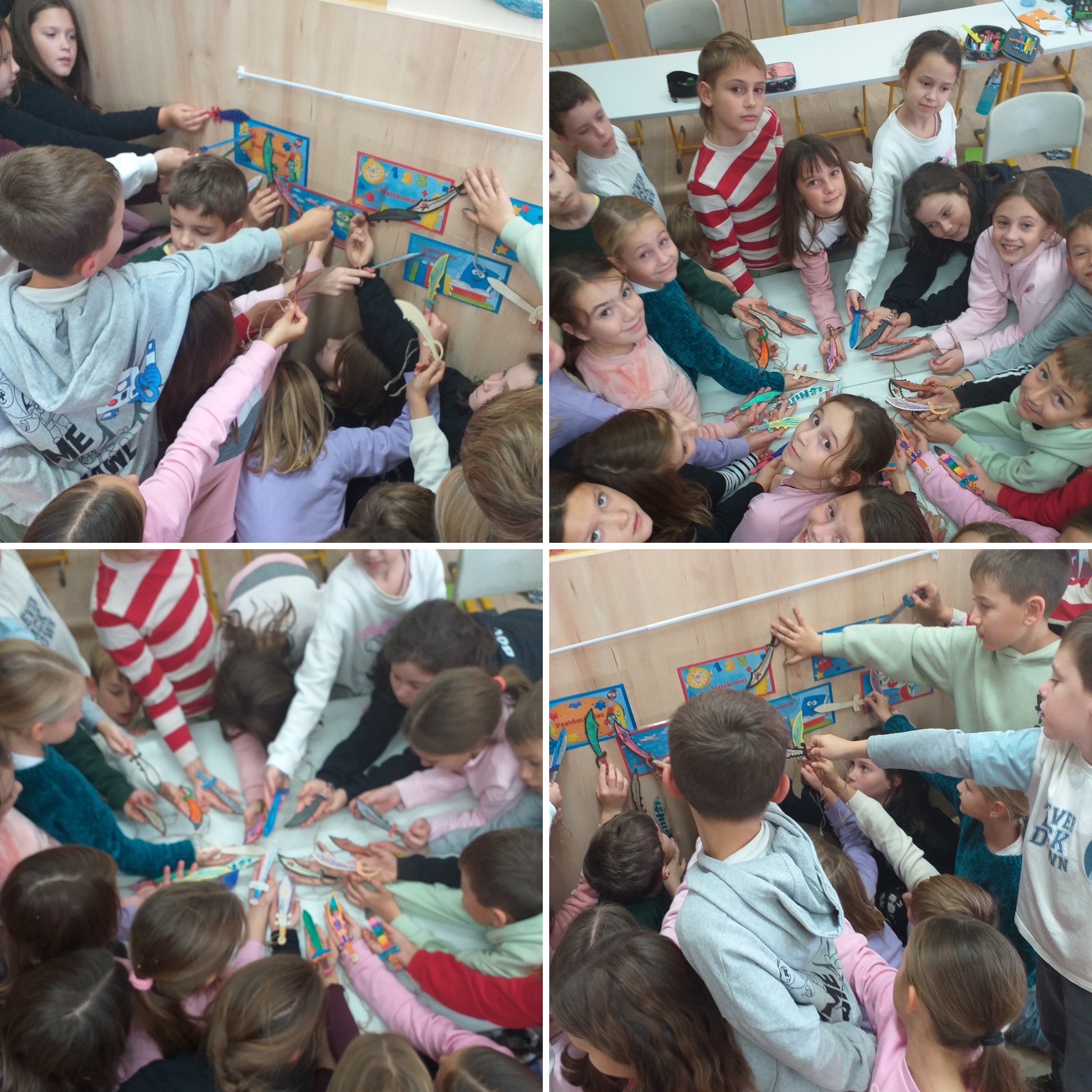 Az önbizalom erősítését Úgysemegy és Debizony című történet felolvasásával indítottuk. Majd elhatároztuk, hogy Kalóz osztályhoz híven, ’Debizony’ kihajózunk a Bátrak tengerére. Természetesen „felfegyverkezve” indultunk útnak. Mindenki a saját nevével és díszítésével elkészített fakarddal lépett a fedélzetre. Az osztályteremben pozitív, optimista feliratokat helyeztünk el: Dalospacsirta, Matekzseni, Legtájékozottabb, Festőművész, Legszebben olvasó, Legjobb magatartású. Ezek a címek egy-egy „kihajózás” után mindenki számára elérhetőek. Az órák végén a kardokkal a megszerzett címeket birtokolni lehet a megfelelő felirat fölé helyezéssel. A gyerekek alig várják, hogy valamennyi „rangos” címet a hét végéig begyűjthessék maguknak. ’Debizony’, ha (száraz)földet érünk, akkor kalandos gyaloglásban is részünk van. Az ősz színeiben gyönyörűen pompázó bólyi emlékművek parkjában sétáink során szívesen időzünk. A fákról lehulló levelek könnyed táncát hatalmas élvezettel próbáljuk utánozni minden egyes alkalommal. És bizony így együtt, egymással még a lehetetlen is egyszerűnek tűnik!