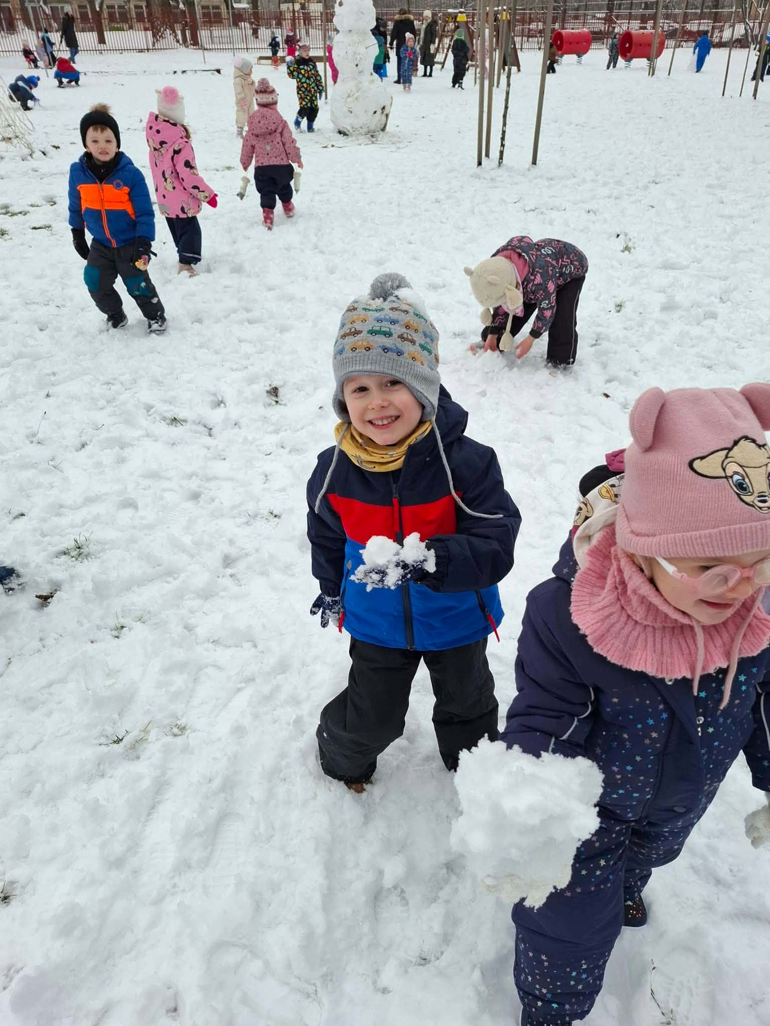 Játszottunk célba dobó játékot: különböző színű vödröket helyeztem a csoportszobába. Külön távolságokat jelöltem ki. A gyerekek dobhattak kis fehér babzsákokat vödrökbe, próbálva bele találni. Udvaron: Játék neve: Hógolyó-célzás. A hóember dobálás csapatban valóban jó móka és remek módja volt az öröm kifejezésének! Ez a játék nemcsak szórakoztató, hanem erősítette a csapatmunkát és az összetartozást is. Amikor együtt építettük a hóembert, majd dobáltuk a hóval, közösen éltük át az örömöt és a nevetést, ami nagyon pozitív élményt nyújtott mindenkinek. Ez a játék kiváló módja volt annak, hogy kikapcsolódjunk, és élvezzük a téli napokat közösen, miközben fejlődött a célzásuk és a mozgáskoordinációjuk.