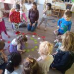 Elmeséltem Bezzeg Andrea: Újra együtt! című meséjét. A hónap során nagy hangsúlyt kapott a közös játék és az együtt töltött idő öröme. Építőkockákkal közösen alkottunk. Tornyokat építettünk, egyet Pirinkónak, egyet Góliátnak. Ehhez kapcsolódva beszélgettünk a barátságról is. Mozgásos játékokat játszottunk zenére, amelyek felszabadult, vidám hangulatot teremtettek. A gyerekek megtapasztalhatták az együttműködés és a közös tevékenységek örömét. Hallgattuk az apró örömök élvezete hónap dalát (Bagdi Bella: Imádok élni a Jobb Veled a Világ Boldogság című albumról.)