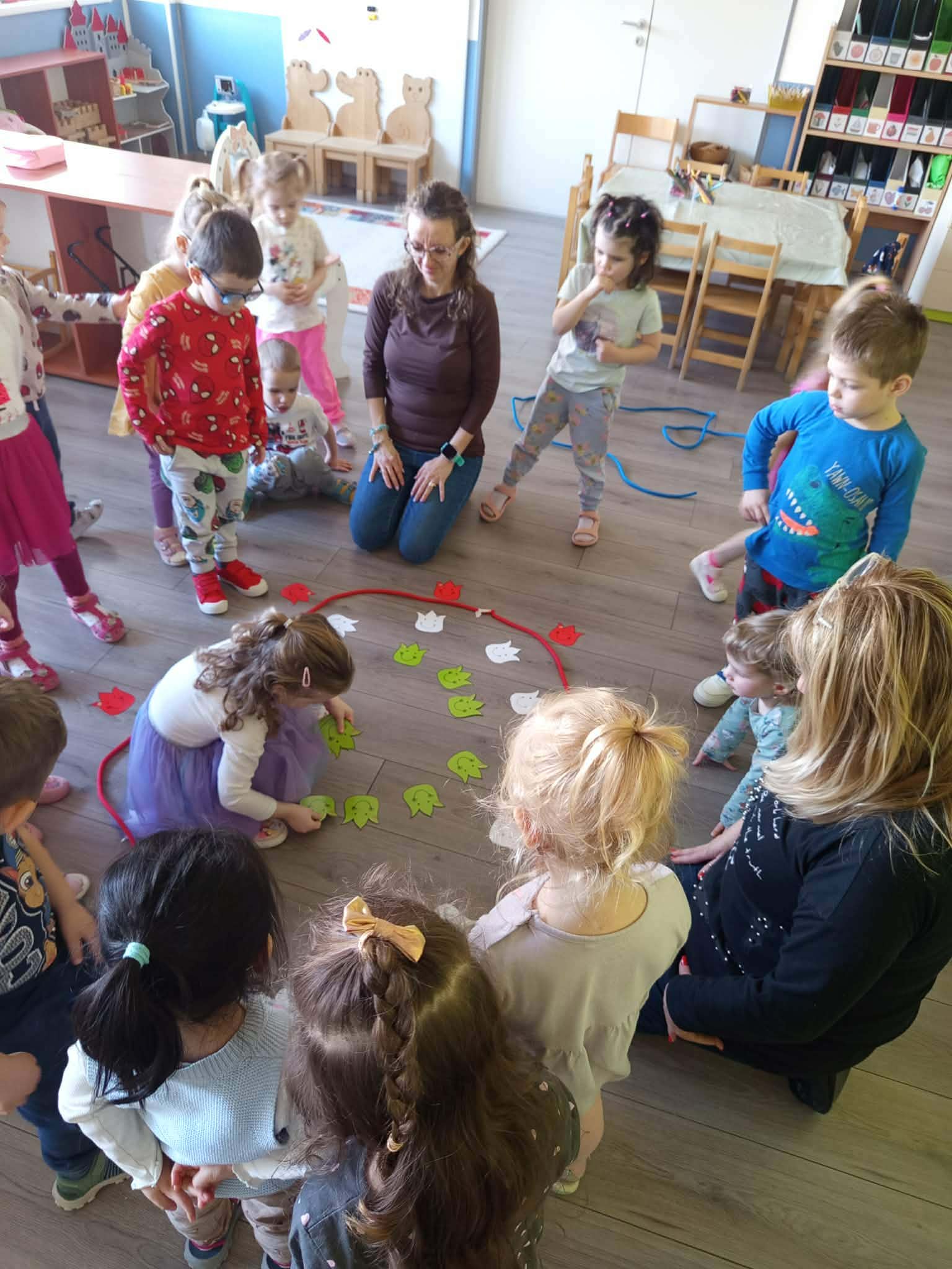 A természetben tett sétánk során a tavasz jeleit figyeltük meg. A gyerekek lelkesen keresték a virágokat, rügyeket, és örömmel fedezték fel a környezetük apró szépségeit. Ezeket az élményeket később alkotásban is megjelenítettük, így a természethez kapcsolódó örömök is megerősítést kaptak. Játszottunk az érzékszerveinkkel! Babot csíráztattunk, melynek fejlődését folyamatosan nyomon követhették! Ez is hozzá tartozott a mindennapi apró örömeinkhez! A Víz Világnapja remek alkalom volt arra, hogy a 3–4 éves gyerekek játékosan ismerkedjenek a vízzel. Egyszerű kísérletekkel, például mi süllyed el és mi úszik a vízen stb. Ezek az apró élmények nemcsak szórakoztatóak voltak, hanem segítették a tapasztalati tanulást és a víz szeretetének, megbecsülésének kialakulását is.