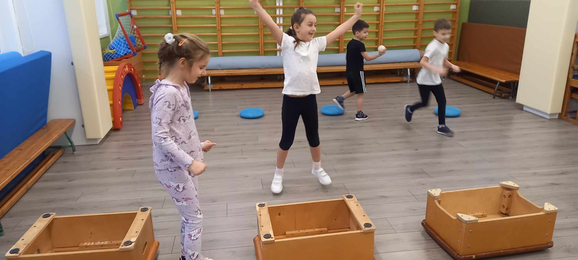 Az ötödik téma a célok kitűzése és elérése volt a boldogságóra keretében, melyet heti tervnek megfelelően valósítottam meg. Cél, feladatrendszer: Ismerjék fel a gyermekek, hogy mennyire fontos, hogy tudják, mit akarnak elérni, és milyen módszerek segíthetik őket ebben. Részcélok fontossága! Kiemelt fejlesztési terület: céltudatosság, önbecsülés, önismeret, énkép fejlesztése, önérvényesítés-pozitív önérvényesítési mód alakítása, együttműködési képesség fejlesztése, kezdeményező képesség fejlesztése. Hétfőn a kezdő relaxáció után beszélgetést kezdeményeztem a gyermekekkel arról, hogy kinek mi a célja, mit szeretne elérni. Itt közeli, és távlati célokat is megfogalmaztak. A közeli célokat is megbeszélve az interaktív táblánkra helyeztük fel a képeket. Fontos szempont volt, hogy reális célokat próbáljanak megfogalmazni, az apró lépéseket is szem előtt tartva, ne keverjék össze a vágyakat az elérhető célokkal. pl: Tanuljanak meg cipőt kötni, ne keverjék össze a bal és a jobb kezüket, lábukat stb. Most nálunk kiemelt cél, hogy minden gyermek felkészült legyen az iskolai életre. Ezután következett Bezzeg Andrea: Boldogvár meséje. A mese átszőtte a hetünket. E köré építettem a feldolgozandó anyagot. A mozgás tevékenység során célba dobtunk változatos formában (a magasság változtatása miatt itt másfajta dobás-technikát is gyakorolhattak a gyerekek). Gyakoroltuk a hajítás, dobás műveletét, kiegészítve célok megfogalmazásával. Addig dobhattak a gyermekek, míg mindenkinek sikerült a kislabdát, gumilabdát a zsámolyba, kosárba dobnia. Kapura ütöttek floorball ütővel. (padlóhoki-jégkorong játékos változata). A Floorball nagyszerű tevékenység, mert nagyon szórakoztató! Florballozhattak egyedül, és egymással is a szabályok betartásával. Ezt a játékot könnyű botokkal játsszák, amelyeket minden életkorban könnyű irányítani. A bot pengéje lehet „jobb” vagy „bal”, ami azt jelzi, hogy a játékos szemszögéből milyen irányba kell tartani a botot. A jobbkezes játékos gyakran „bal” pengét használ, mivel a botot jobbra fogja, a balkezeseknél pedig fordítva. Ezt azért is gyakoroljuk, mert ebben a nevelési évben kiemelt feladatunk a téri tájékozódás fejlesztése. Célba dobhattak: műanyag poharakból épített toronyra. Cél a torony ledöntése volt. Tekéztünk is. A lényeg a pozitív élményen volt. Ha egy tanulási folyamat közben örömöt élünk át, akkor a foglalkozás alatt lévő tudás a hosszú távú memóriába épül be, és sokkal könnyebben leszünk képesek előhívni, mivel az emlékezés újra az átélt örömöt, vidámságot, melegséget idézi meg lelkünkben. Játszottunk egy új mozgásos játékot is. Babzsákos fagyasztós fogó: minden gyermek 1 babzsákkal a fején szabadon futhat. Ha valakinek leesik a fejéről a babzsákja, megfagy. Akkor állhat vissza, ha egy társa felveszi, és visszateszi a fejére. Változat: a szabadító odadobja a saját babzsákját, a megfagyott társnak, aki azt felteszi a fejére, majd a sajátját a földről felveszi, és odadobja, az őt szabadítónak (aki megfagyott, mert nincs babzsákja), majd mind a ketten futnak tovább. Dobás ugrásból, vagy szökdelésből. (együttműködési képesség fejlesztése) A gyerekek biztatták, buzdították egymást, örülve egymás sikerének. Ismételtük a tavaly megtanult „János úr készül” című kapubújós dalosjátékot amit szintén kapcsolódott a meséhez. Dramatizáltuk a mesét, majd következett a boldogságvár puzzle. Ezt eldugtam a csoportszobában, és a gyermekeknek ezeket a darabokat kellett megtalálni, és közösen összerakni. Ez többször is eljátszottuk, akkora nagy volt a lelkesedés. Hallgattuk Bagdi Bella: Van nekem egy álmom című dalát melyhez mozdulatokat találtunk ki. Ezt is többször ismételtük. Macis játékot játszottunk. „Óvónéni játéka” a Boldogságóra könyvből. Jelzésértékű maci fejdíszt tettem fel. A térkép segítségével, és a feladatok végrehajtásával eljutottunk az iskoláig, ami valóban nagy örömünkre szolgált, hiszen minden gyermekünk iskolába megy ősztől. Következett a Boldog vár színezése (mese illusztráció). Rájuk bíztam ennek létrehozását, hogy mindenki a saját elképzelése szerint színezzen. Játszottuk a „varázshópehelyt”, a képzeletbeli hóesésben. Figyeltünk a megélt érzéseinkre, megfogalmazták ismét, hogy mit szeretnének elérni. Felragasztottuk a célok elérésének jelét a boldogság várunkra, megbeszéltük, hogy már félúton vagyunk a célhoz, ahhoz, hogy bejussunk a várba. A hetet ismét Bagdi Bella: Van nekem egy álmom című dalával fejeztünk be.