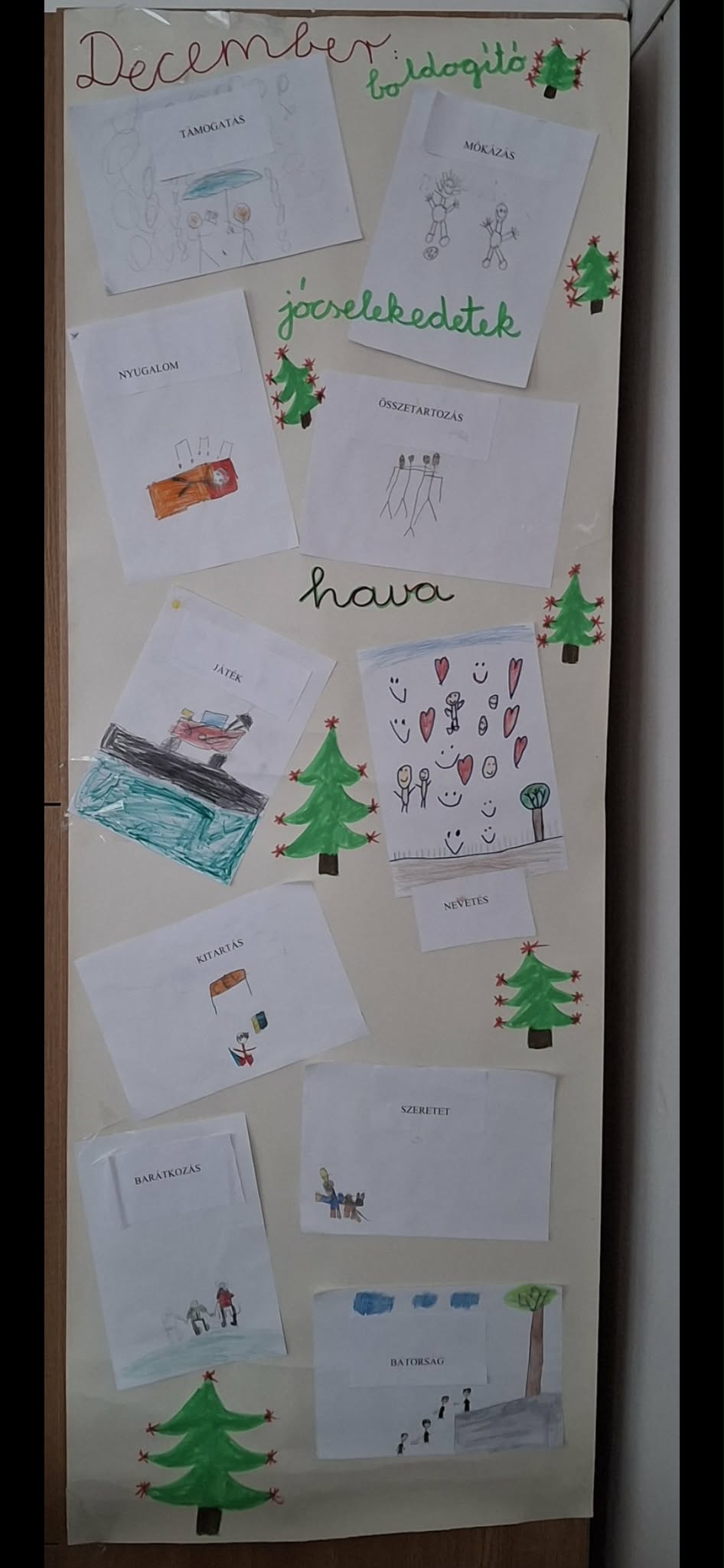 Nagyszerűbbnél nagyszerűbb napjaink voltak decemberben is a Miskolci Petőfi Sándor Általános Iskolában. Nehéz volt a sok-sok csodás program pillanataiból válogatnunk, hogy megmutathassuk, hogyan is készültünk az ünnepre a mi „BOLDOG ISKOLÁNKBAN” . A meglepetések, „boldogító jó cselekedetek” között voltak apróbbak és nagyobbak, amellyel kedveskedtek egymásnak gyermekek-felnőttek, így például december 5-én a BOLDOGSÁGNAP, amikor a teljesség igénye nélkül többek között ajándék „Mikulás-exatlon” pályán játszhattak 1-8.osztályig önfeledten a gyerekek, de volt közös flashmobunk is, amikor iskolánk aulájában boldogan táncoltunk együtt mindannyian, s persze a hatalmas fenyőfát is közösen készített díszekkel ékesítettük.