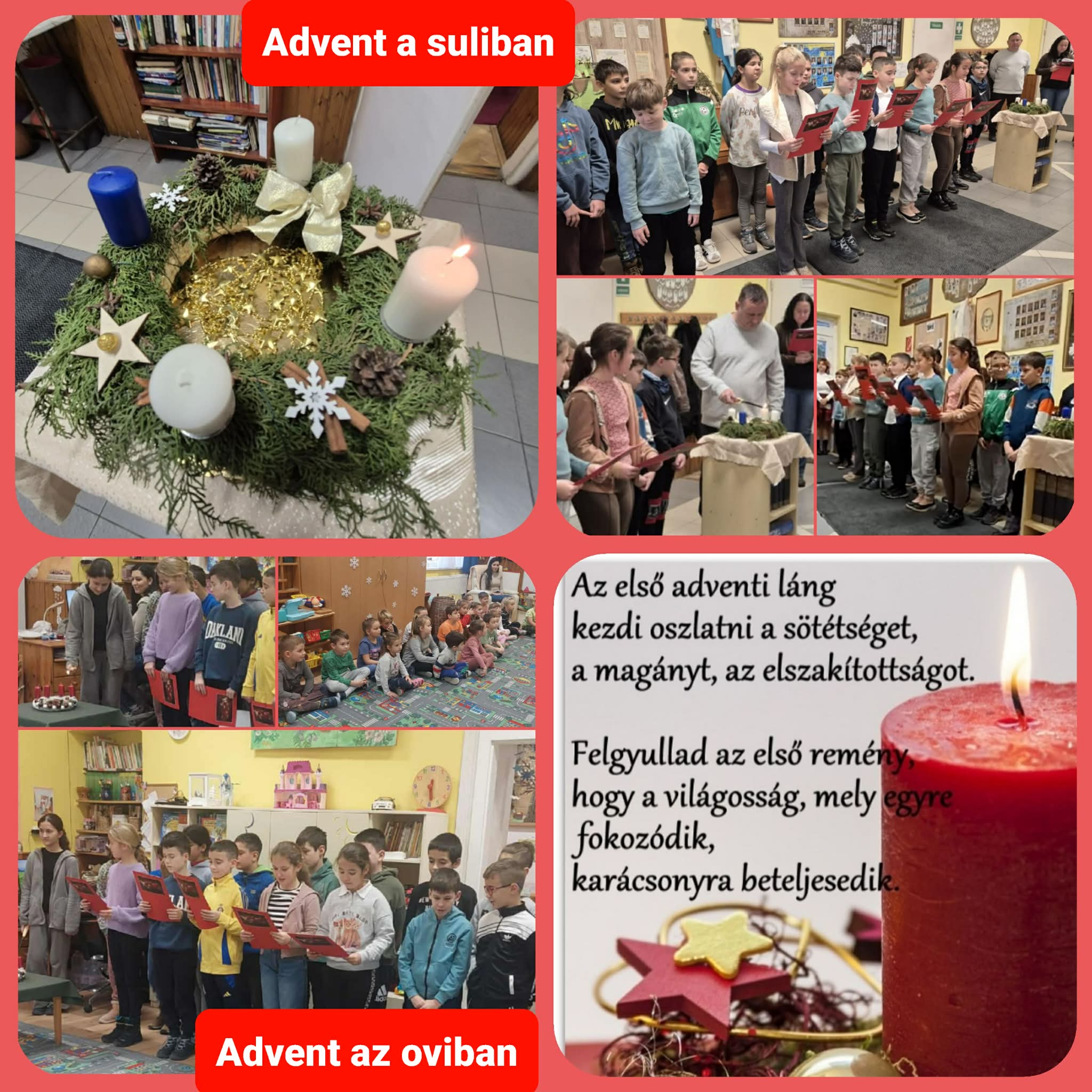 • Iskolánk minden tanulóját és dolgozóját ajándékoztuk meg az első adventi gyertya meggyújtásakor előadott kis műsorunkkal, majd karácsonyi műsorunkban egy nagyon kedves tánccal ajándékoztuk meg iskolatársainkat.