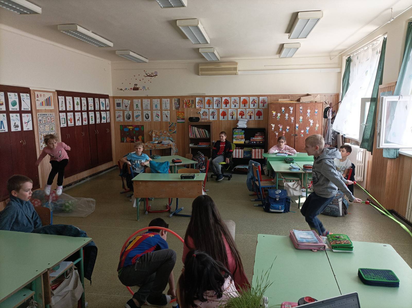 Kis akadálypályát építettünk a teremben, amin először csak a bátor karakterek mentek végig, de utána a nézőközönség is szeretett volna próbát tenni. A szivárvány ugrókötél csak úgy suhogott a kívánságforgatások közben.