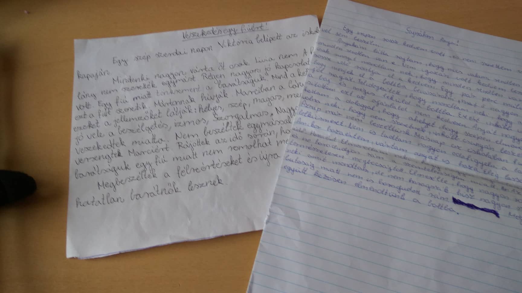 A gyerekek csoportban dolgoztak és megfogalmaztak egy-egy bocsánatkérő levelet.