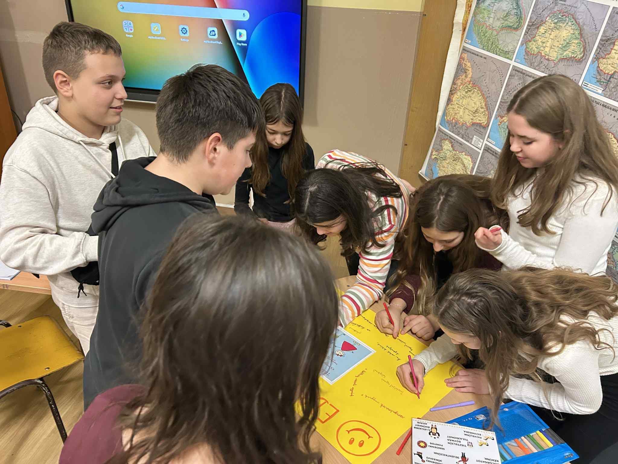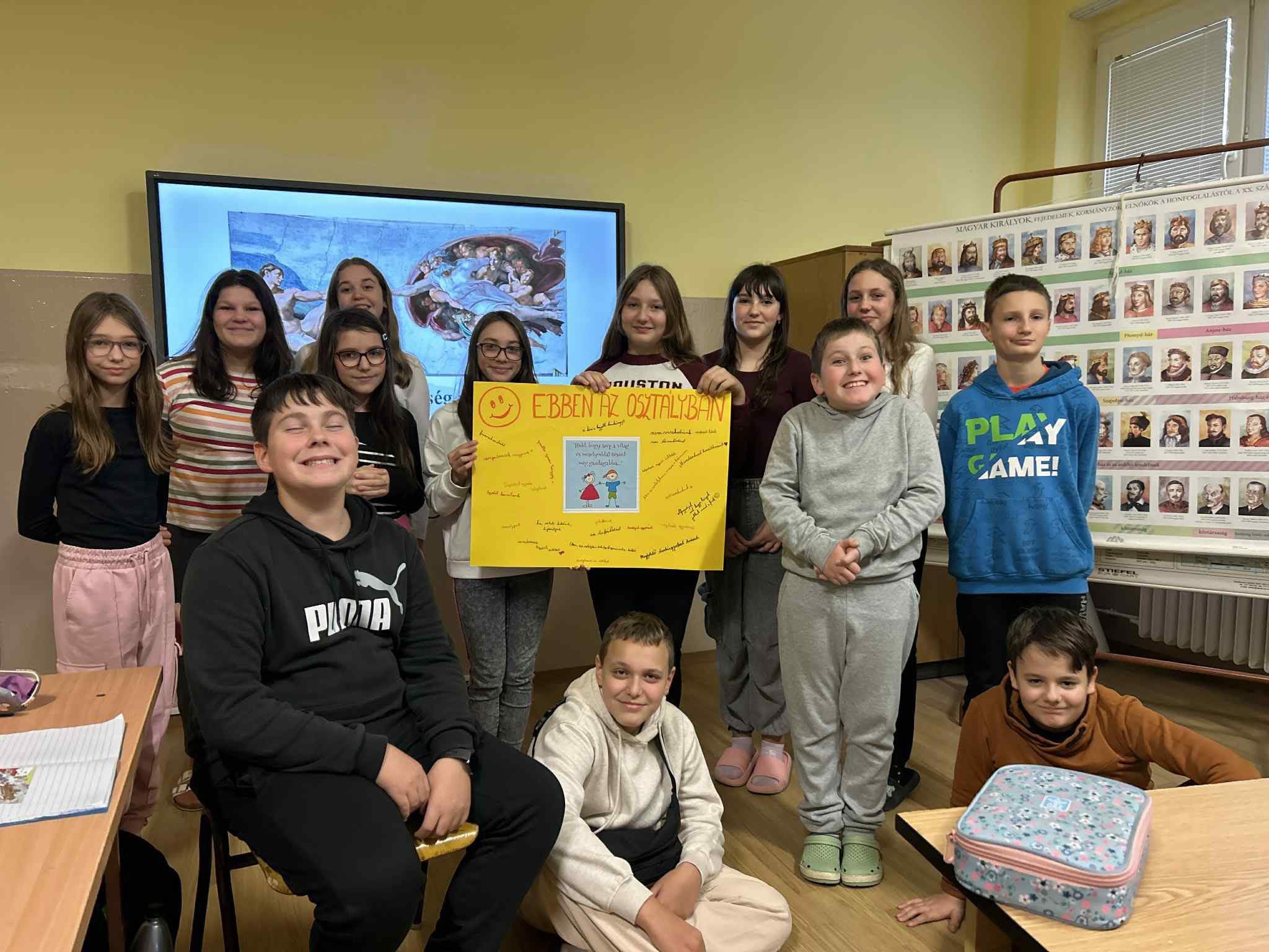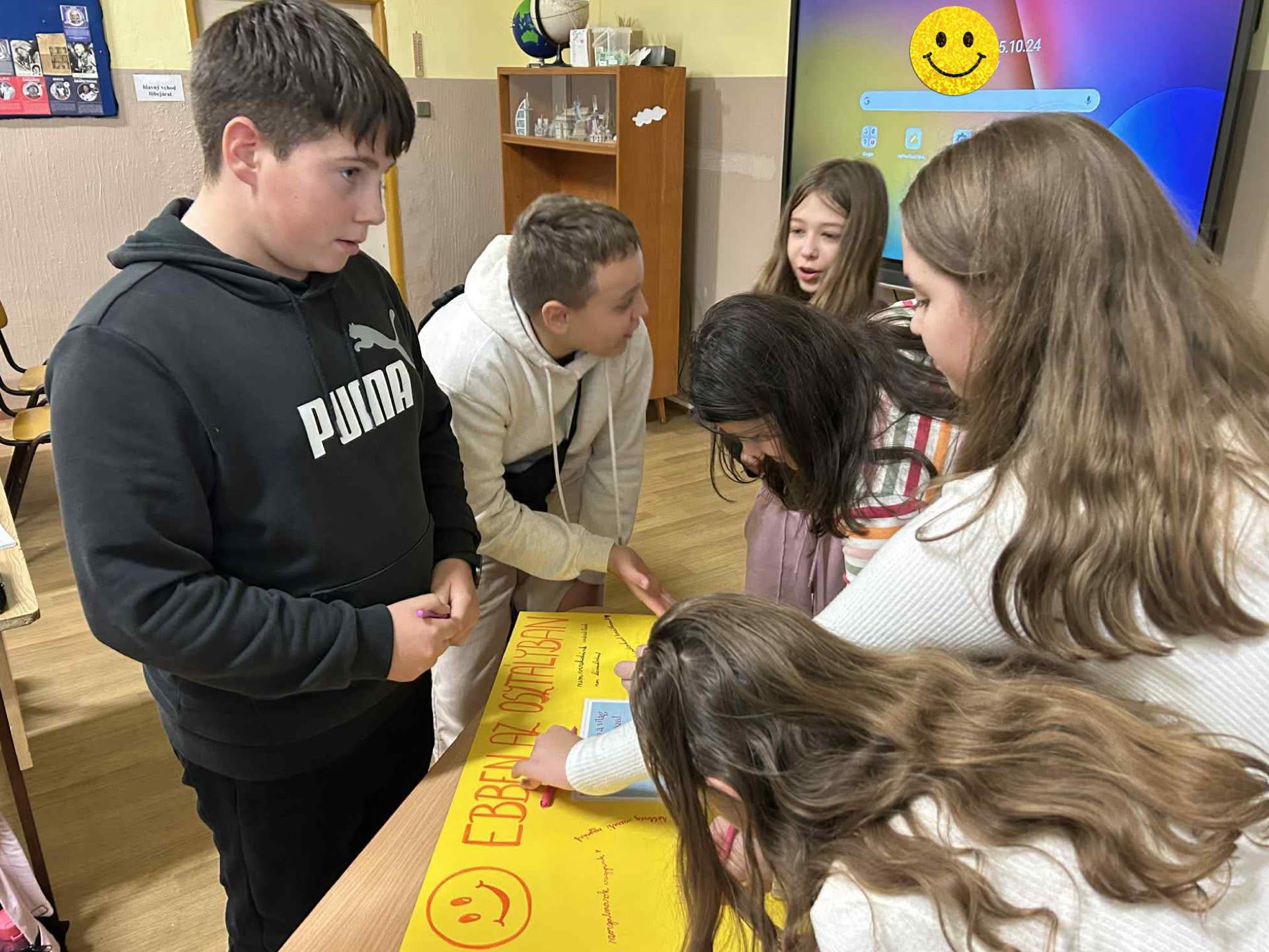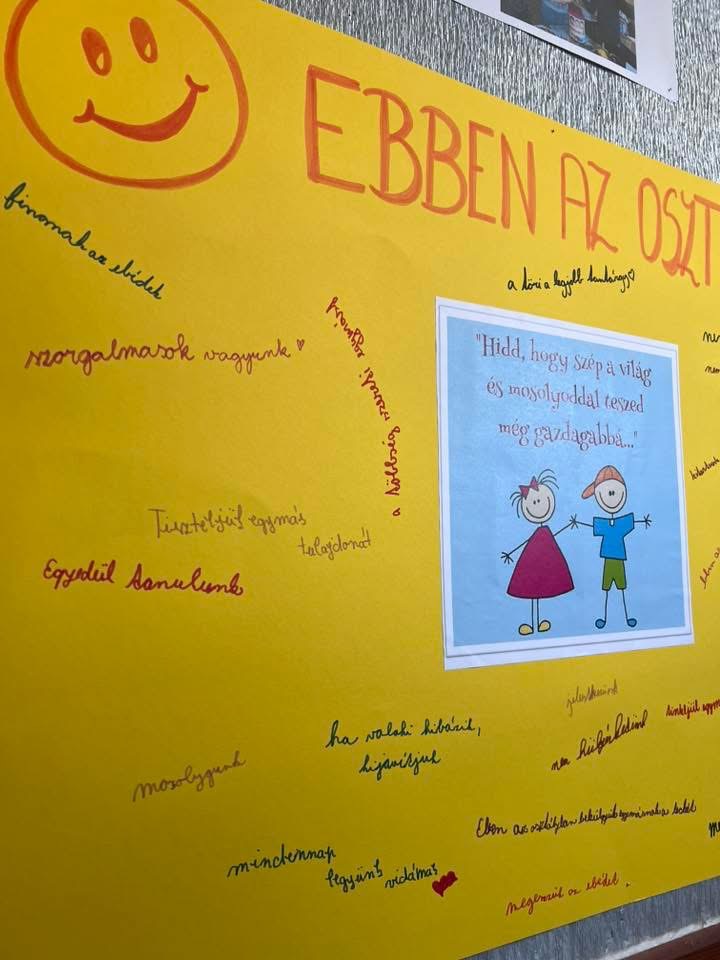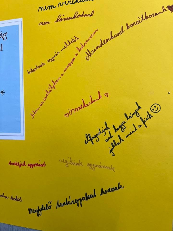 A hatodikosok hangulatjelekkel fejezték ki aktuális érzéseiket, majd összeállították az osztályuk optimista, pozitív gondolatait. Megfogalmazták, mitől jó a közösségük, és milyen értékek teszik a mindennapjaikat örömtelibbé.