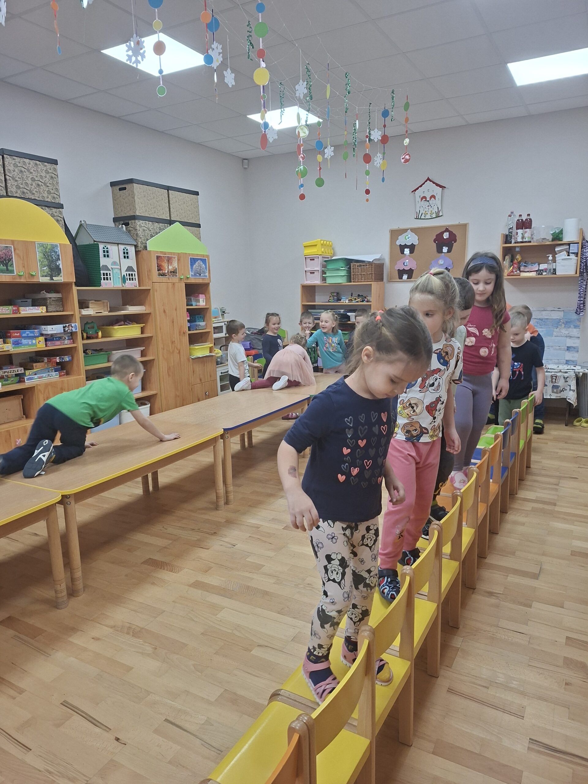 Mivel az egészségmegőrzés, betegségmegelőzés volt a heti témánk, ezért ezen a napon, közös célként tűztük ki, hogy egy akadálypályát teljesítünk a gyerekekkel. Mivel imádnak mozogni, kitörő örömmel, nagy lelkesedéssel hajtották végre a feladatokat.