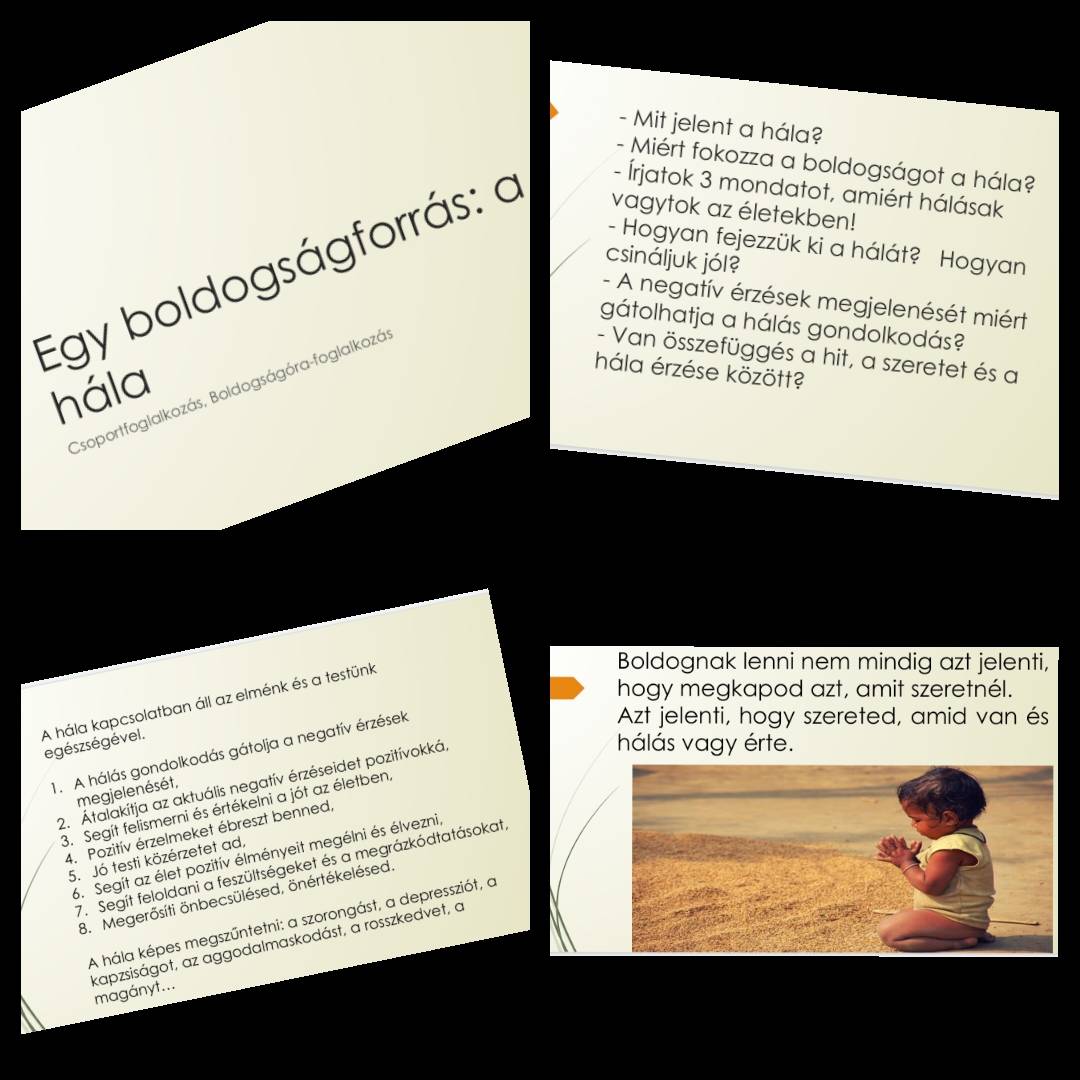 Cél: Kollégistáink ismerjék fel a hálának jótékony szerepét életükben! Legyenek képesek rá, hogy mindennapjaik során a boldogságuk fokozásának és a stressz oldásának eszközévé tegyék azt!