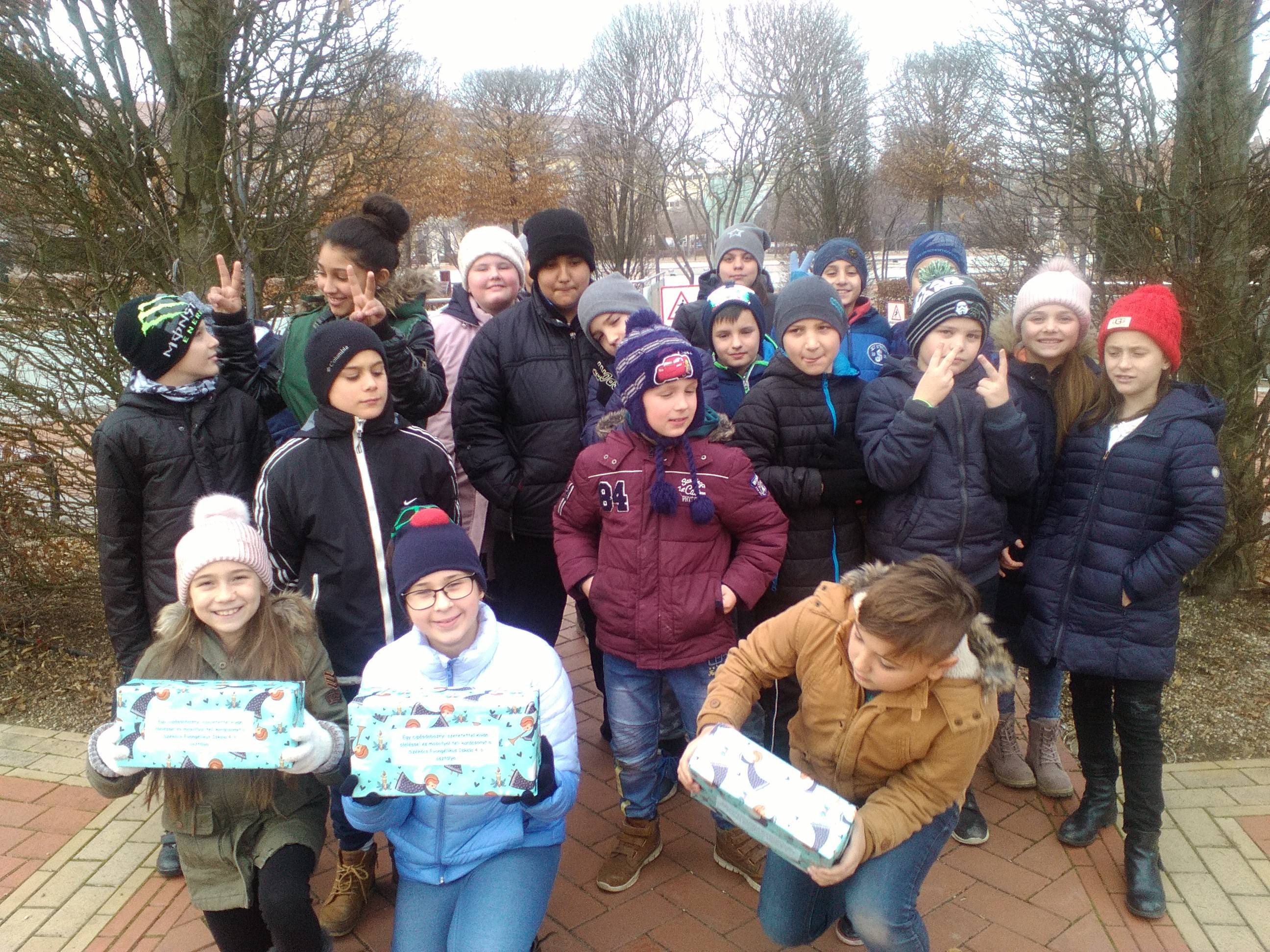 Teréz anya mondta, hogy nagy dolgokat nem tudunk cselekedni, csak kis dolgokat, de azt nagy szeretettel. Úgy gondoltuk, hogy kedveskedünk a városban található Családok Átmeneti Otthona lakóinak. Minden kis kedves tanítványom valamit odaszánt a mikulás csomagjából. Az összegyűlt csemegéket cipősdobozba raktuk, majd útra keltünk és személyesen vittük el jókívánságainkkal együtt. Felemelő érzés volt kis diákjaim számára, hogy milyen dolog adni, s milyen jó örömet szerezni.