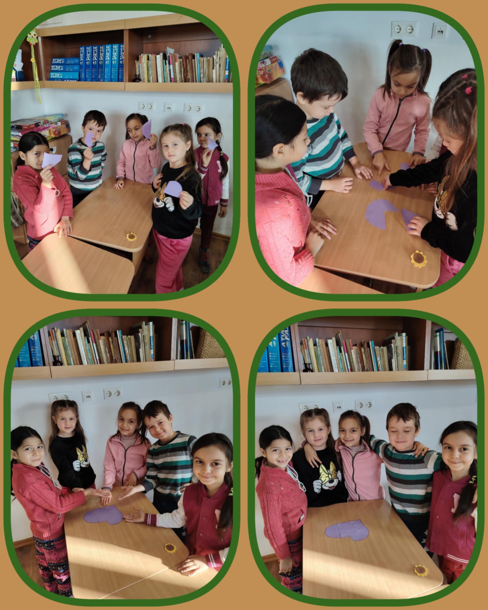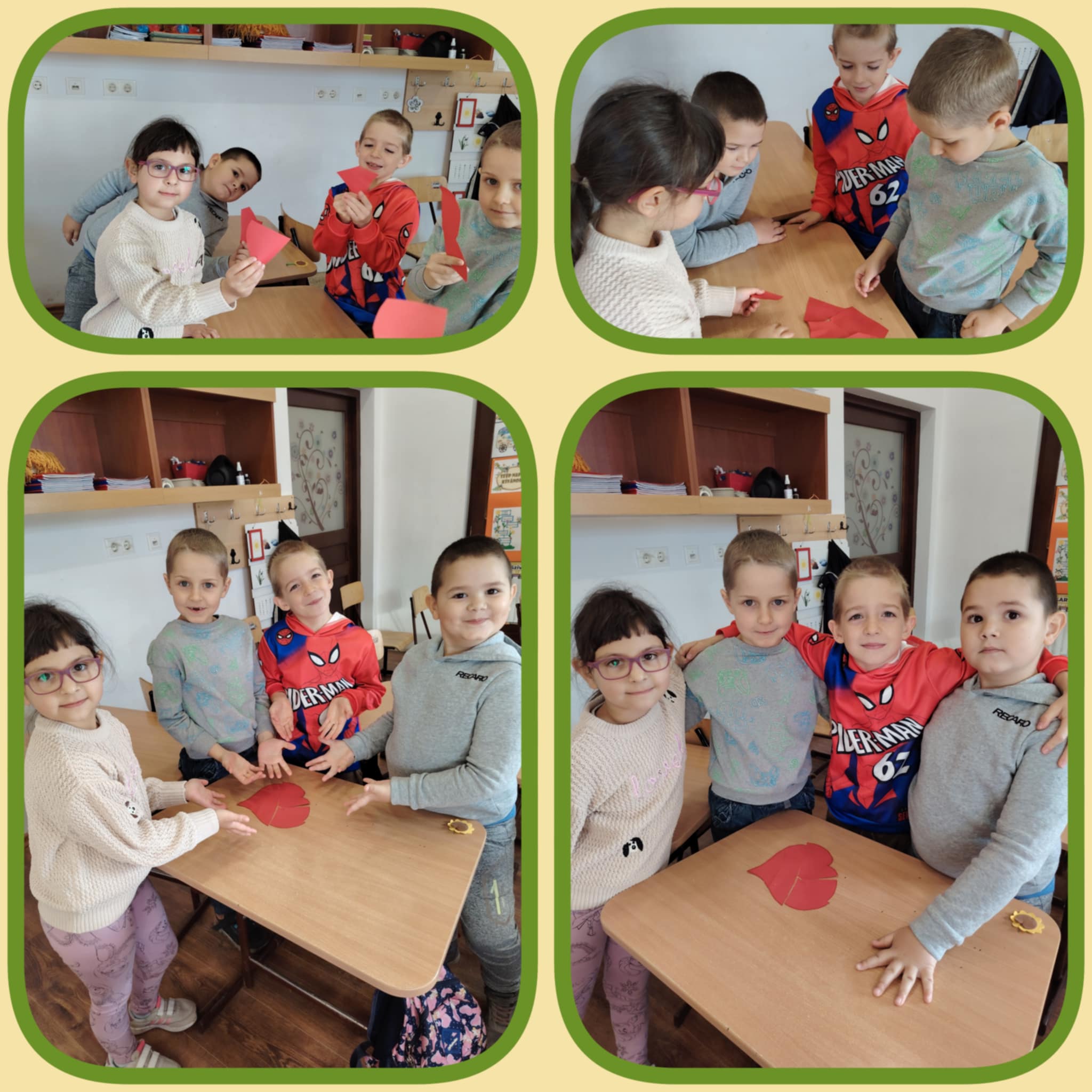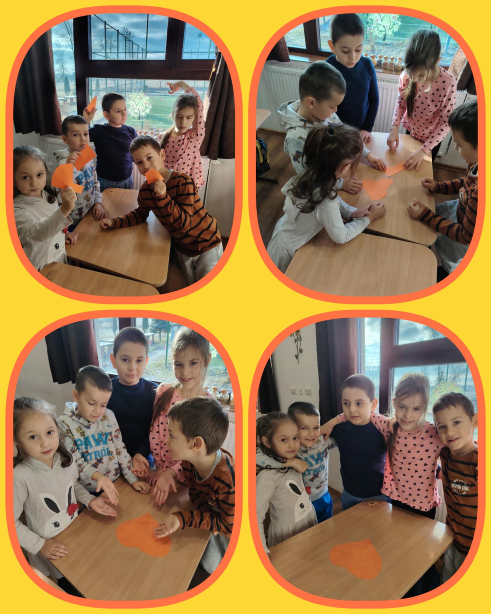 Szív puzzle kirakásával folytatták, megtapasztalva, hogy egymásra, a társakra figyelve milyen hamar egyesíthetik a darabkákat, így egy közös nagy szívet kapva.