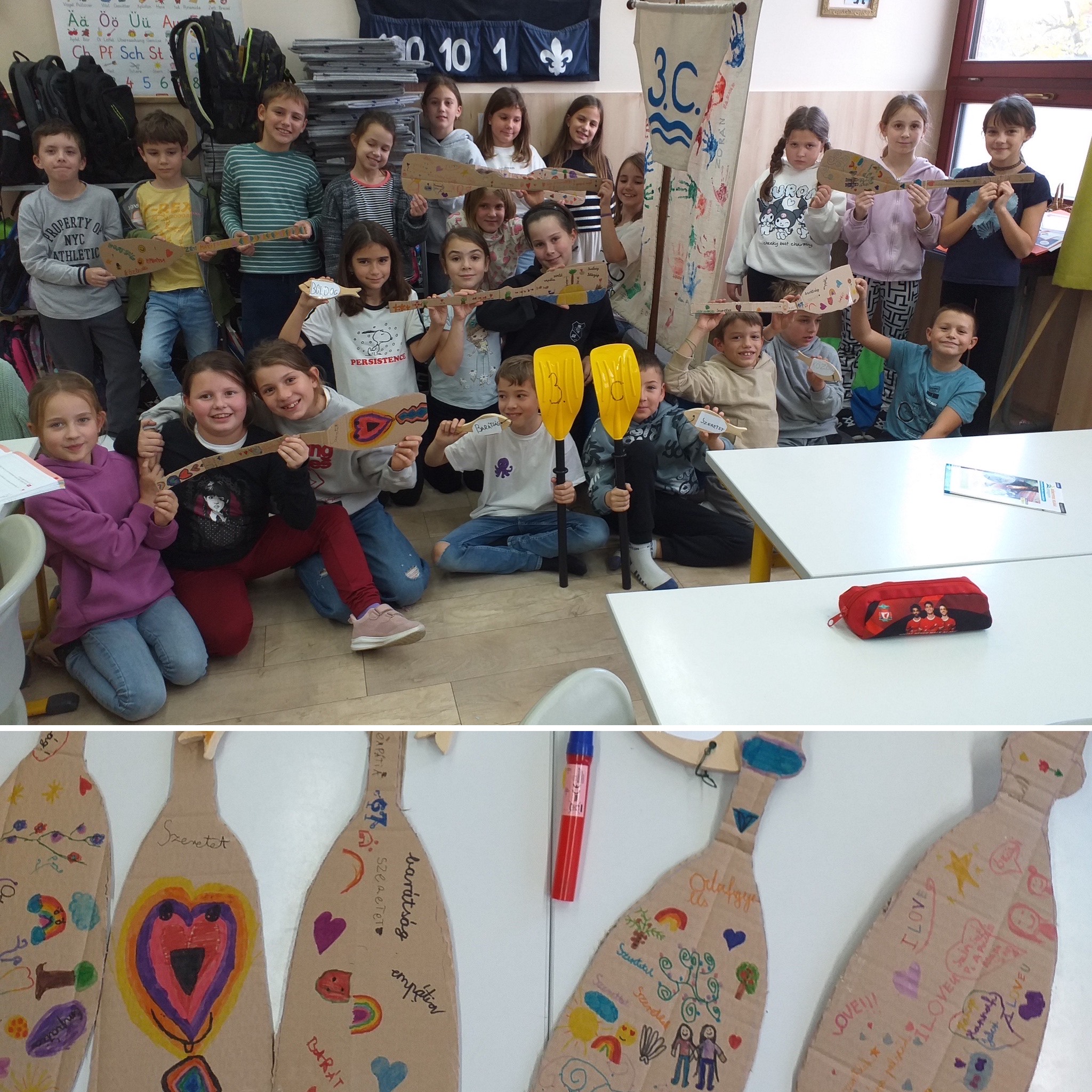 A támogató kapcsolatok és az összetartó közösség ereje vezérli hajónkat immár 3. éve. Hála hajónk vízre bocsátásával a közös evezők elkészítését is bevállaltuk. A kartonból készített lapátokra hívószavakat írtunk, melyek közösségépítés kulcs szavai. De természetesen rajzokkal is feldíszítettük a hajókázás kellékét. A mekkora szíve van egy babszemnek mese elolvasásával a kapcsolatok fontosságát ismertük meg. Történjen bármi is velünk, mi összetartozunk és kiállunk egymásért. A köszönés világnapját is megpecsételtük. A köszönés a másik iránti tisztelet kifejezésének egyik legalapvetőbb formája. A köszönés és megszólítás az egymás közti kapcsolatteremtésnek egyik fontos eszköze, a közösséghez való tartozást is kifejezi. Kék színbe öltözve a gyerekekkel együtt, a közösséghez való tartozást most kicsit színesebben fejeztük ki és a leggyakrabban használt Hello köszönést a testünkkel is megformáztuk.