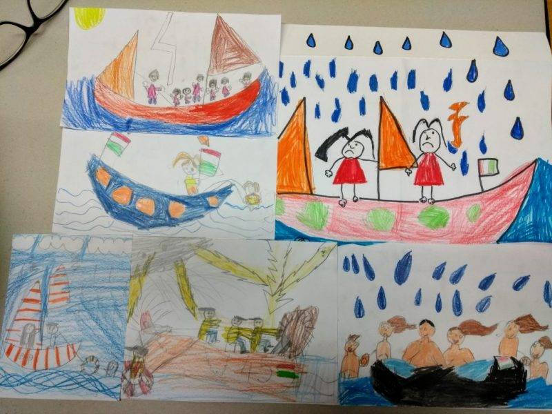 A gyerekek különböző társas kapcsolatokat jelenítettek meg a rajzokon. Elsősorban a család jelent meg a csónakban, de a vízben fuldokló osztálytárs is gyakori volt. Érdekes volt látni, ahogy kötelet és mentőövet rajzoltak a vízben rekedt társaknak. A legtöbben arra törekedtek, hogy minél több embert magukkal tudjanak vinni, de volt olyan gyerek, aki csak magát rajzolta a mentőcsónakba. Miután látta a többiek igyekezetét, ő is elgondolkozott, és rajzolt maga mellé családtagot.