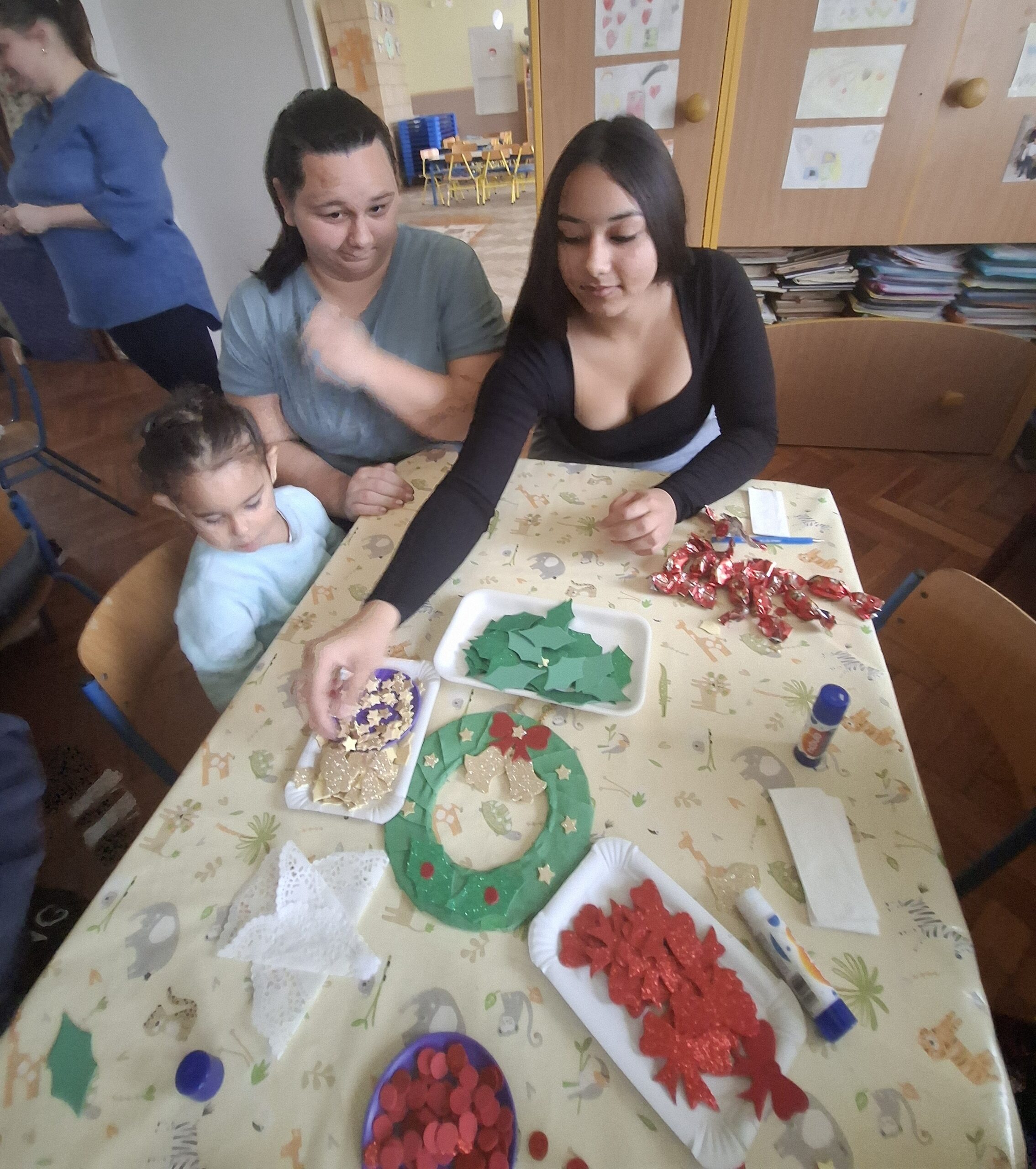 Közösen feldíszítettük óvodánk fenyőfáját, melyre a szülők is készítettek díszeket, Karácsonyi műsorral kedveskedtünk a gyerekek szüleinek. Ez volt a mi kis ajándékunk. Adventi délelőtt keretében pedig díszeket készítettünk, meghitt beszélgetéseket élhettünk meg a szülőkkel, nagyszülőkkel, volt óvodás gyerekekkel közösen. A karácsonyi együttlét során érezhettük, hogy ezek a közösen megélt élmények teszik igazán meghitt ünneppé ezeket a pillanatokat, s erősítik mindannyiunkban,, hogy egy közösség vagyunk.