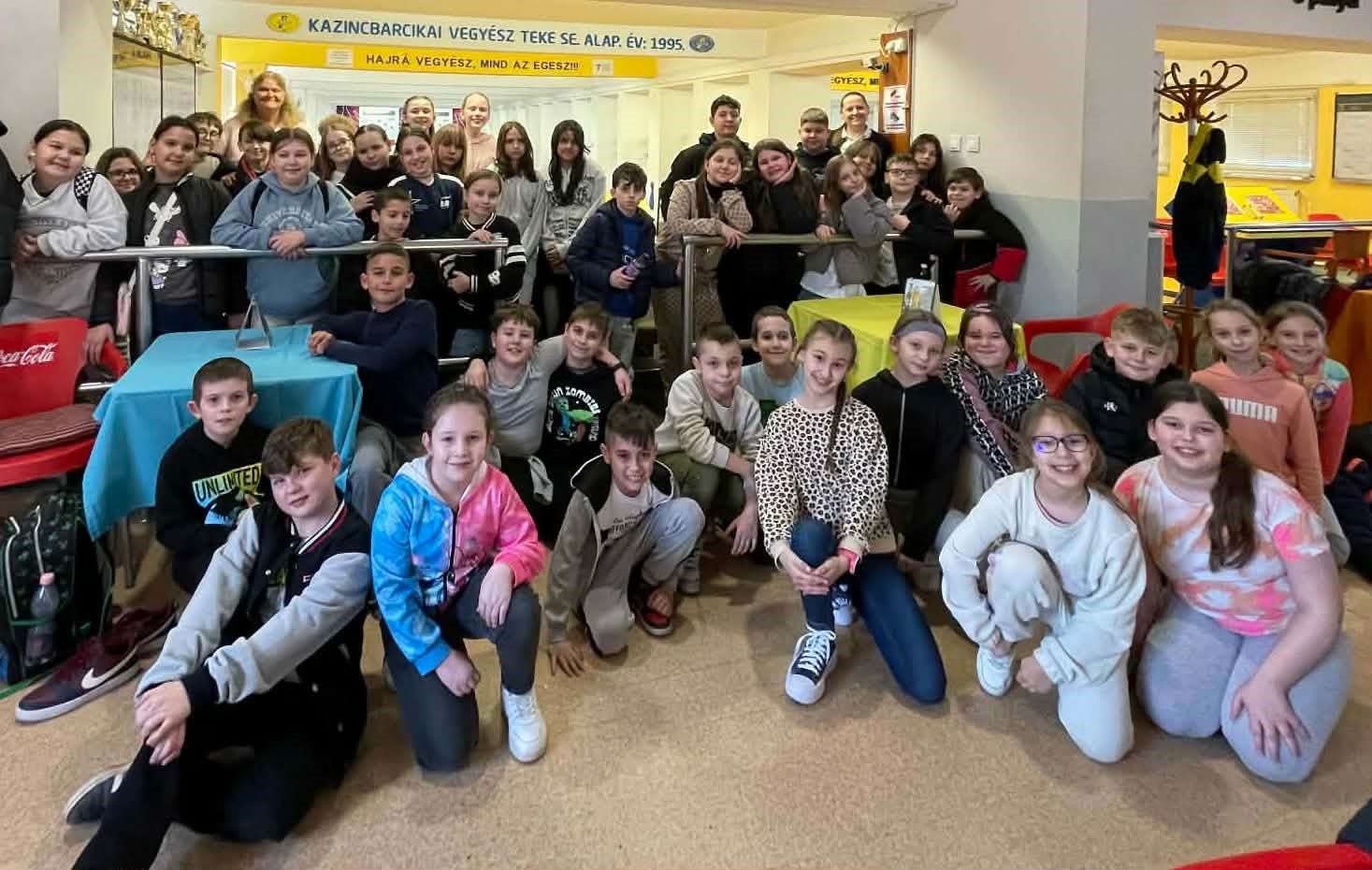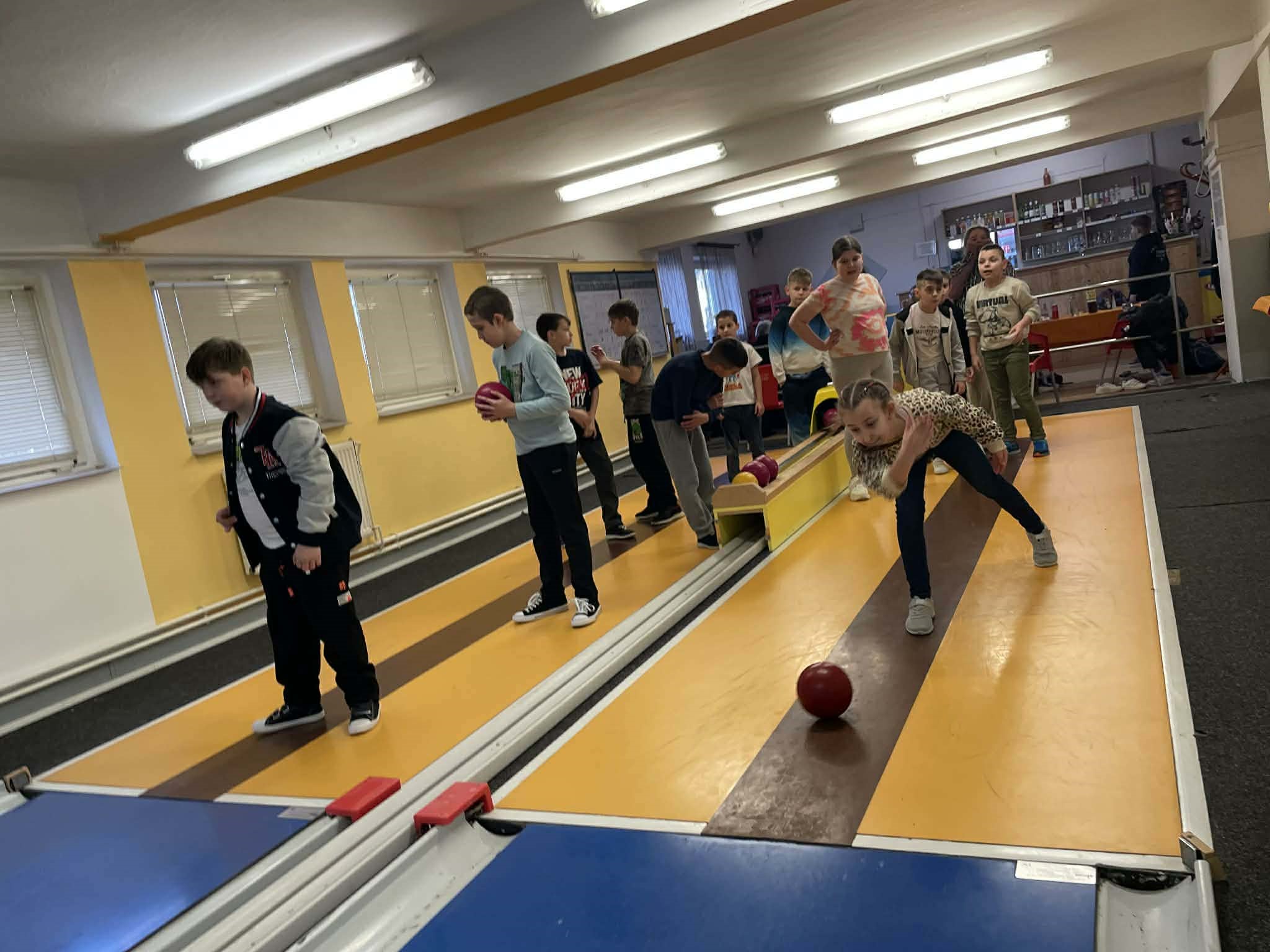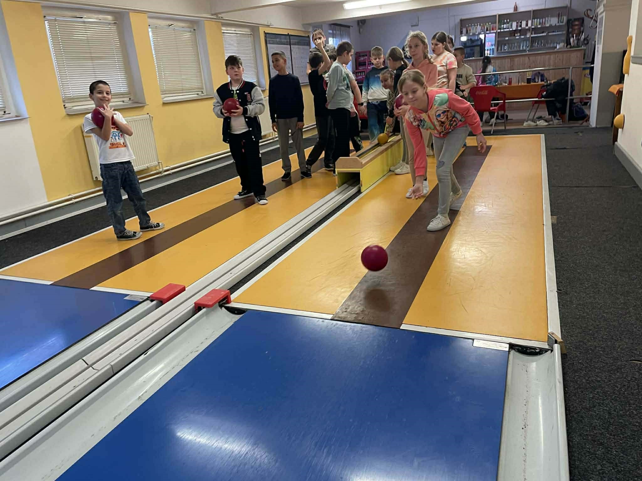 Egy napos kora márciusi napon úgy döntöttünk, hogy egy újabb apró örömöt osztunk meg egymással az osztályommal: kipróbálunk egy új sportágat, a tekét. Szerencsére sikerült társakra lelnünk iskolánk két felső tagozatos osztályában, így közel 50 gyerekkel utaztunk el a közeli nagyváros teke sportegyesületének szentélyébe. Szerencsére a teke helyi nagyágyúi éppen előttünk fejezték be az edzést és még néhány jótanáccsal is elláttak minket, hogy örömteli legyen az első találkozás ezzel a kellemes sportággal kapcsolatban.