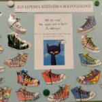 A második órán átbeszéltük ismét a témát, átolvastuk az összegyűjtött mondatokat. Mindenki kiválasztott egyet, amit ráírt a kiszínezett cipőjére, a kártyájára. Közben meghallgattuk a hónap dalát, majd táncoltak is rá. Lelamináltuk a cipőket, elkészítettük a tablót. Kitettük az osztályba, megbeszéltük, hogy a kártyákat annak adhatják majd, akiről úgy gondolják, szüksége van egy kis pozitív támogatásra. Örültem neki, hogy emlékeztek, hogy a tavalyi tanévben a bocsánatkérő kártyákat is így használtuk fel. Az óra végén megbeszéltük, hogy milyen gondolatokkal lettek gazdagabbak. Ezt az órát is meditációval zártuk.