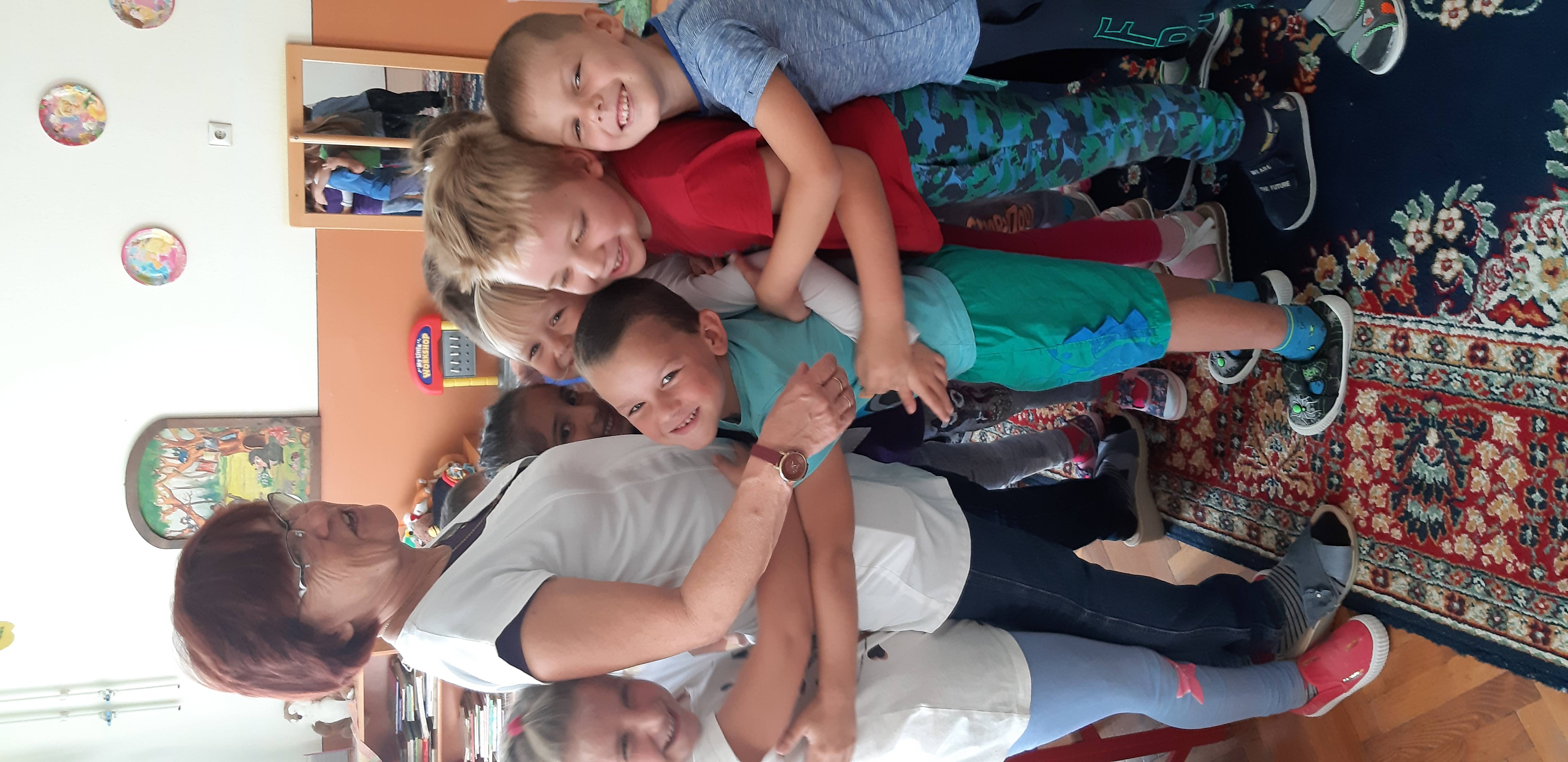 A foglalkozást a megszokott gyertyagyújtással, hívódallal kezdtük, majd utána Bagdi Bella Szép nap ölelj c. dalára „körbeadtuk a szeretetet”. A gyermekek a hálafa történetét érdeklődve hallgatták. Megbeszéltük a hála szó jelentését, s elmondhatták, hogy ők kinek, és miért hálásak. A csoportba járó kis társaiknak kifejezhették ezt öleléssel, símogatással, baráti kézfogással. A reggel készített kis szíveket felragasztottuk egy nagy szívre, aminek közepére a Jobb Veled A Világ Alapítvány logóját helyeztük el. Az elkészített képet közösen elvittük a Polgármester Úrnak, akit sikerült ezzel meglepni. Ráadásként elénekeltük neki azt a dalt, melyet minden reggel a tízórai előtt meghallgatunk, így már a gyerekek is kívülről tudják./ Bagdi Bella Napindító, útravaló dal/. Az otthoni feladattal célunk, hogy a szülőket megpróbáljuk bevonni a boldogságórába, ezért elhatároztuk, hogy ezentúl mindig lesz otthoni feladat, s minden órán vendégül látjuk az érdeklődő szülőket.
