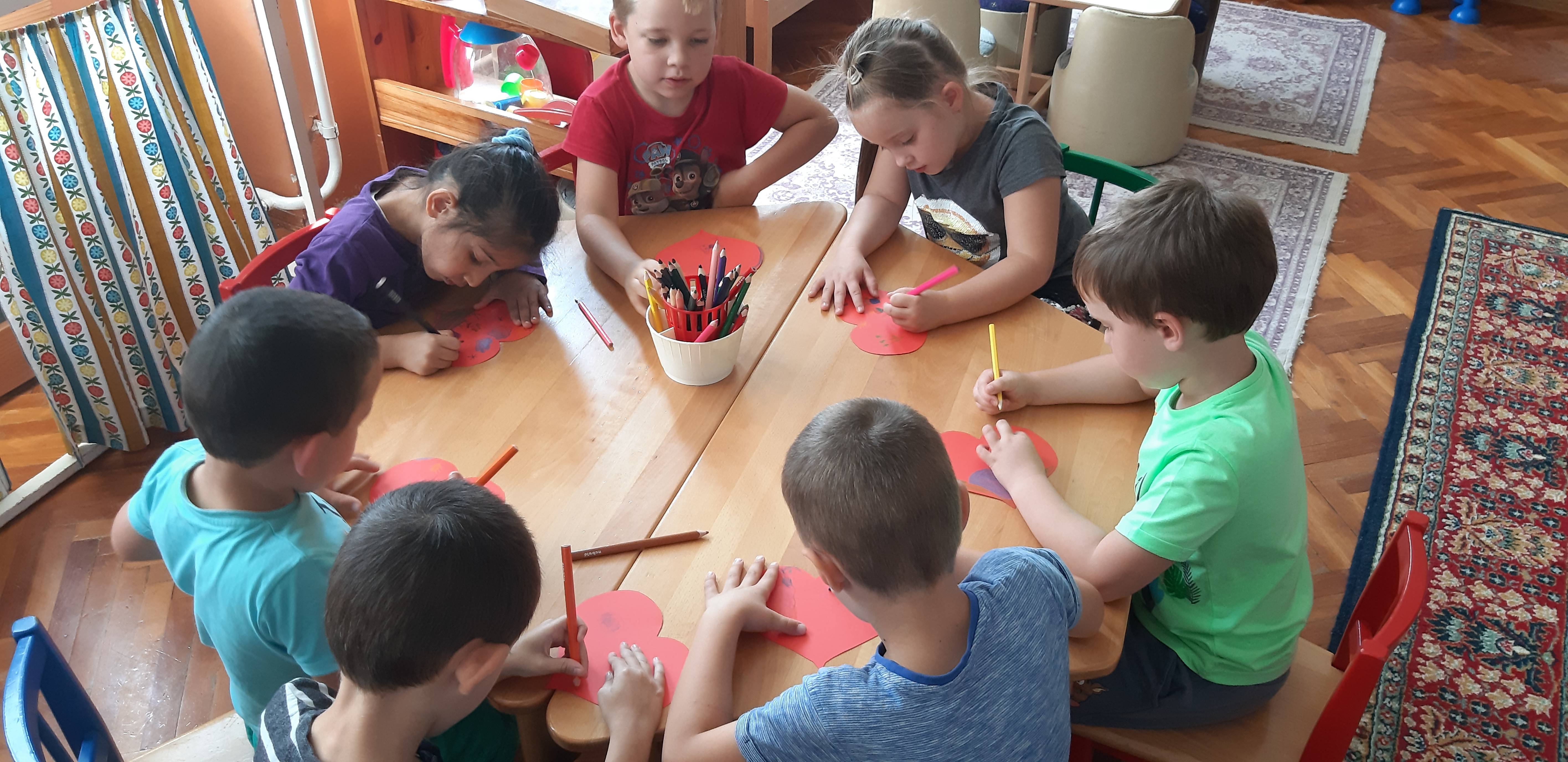 Sajnos ezt csak egy kislány készítette el, ezért reggel minden gyermekkel elkészítettük közösen az óvodában a szivecskét.