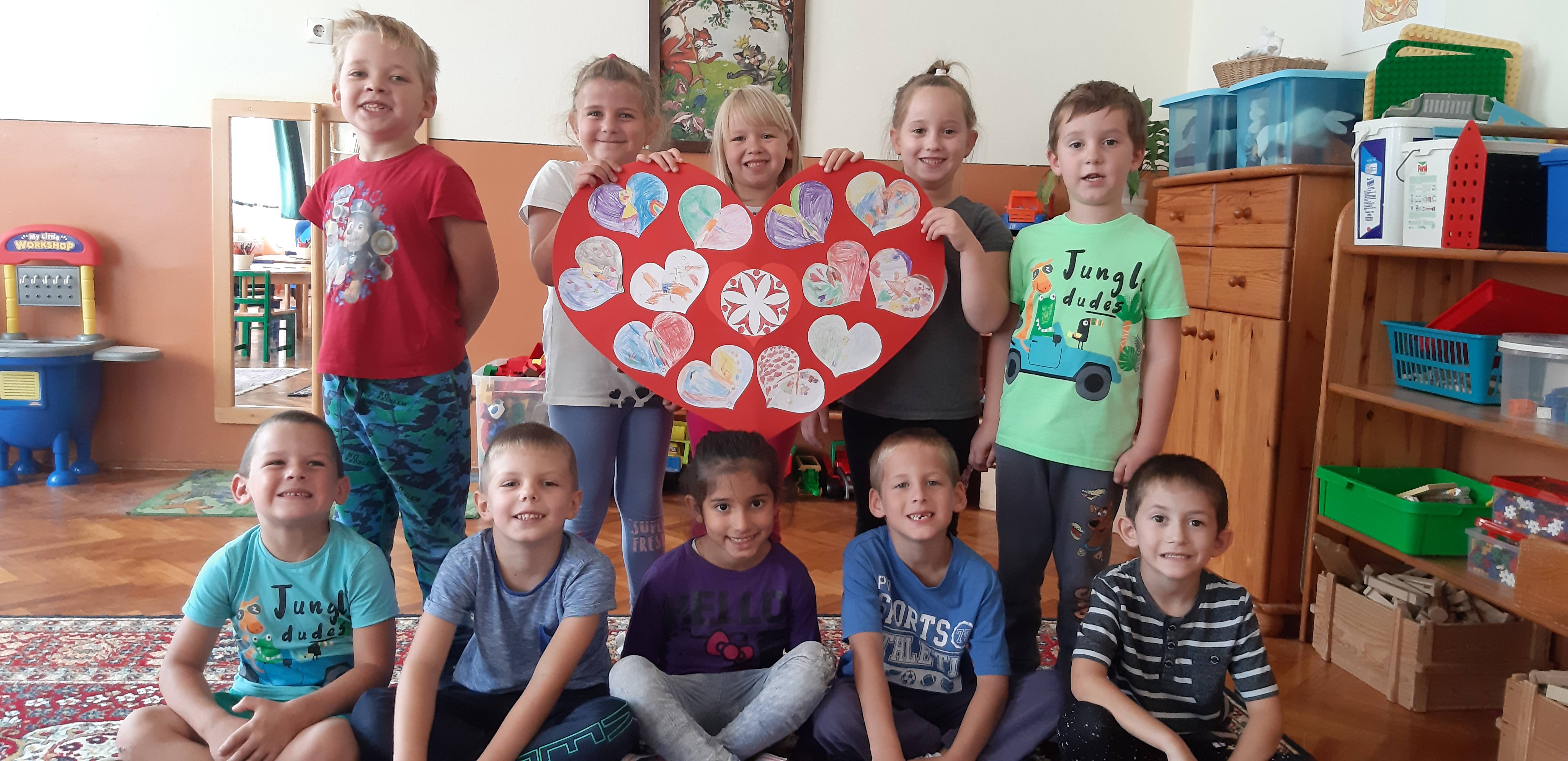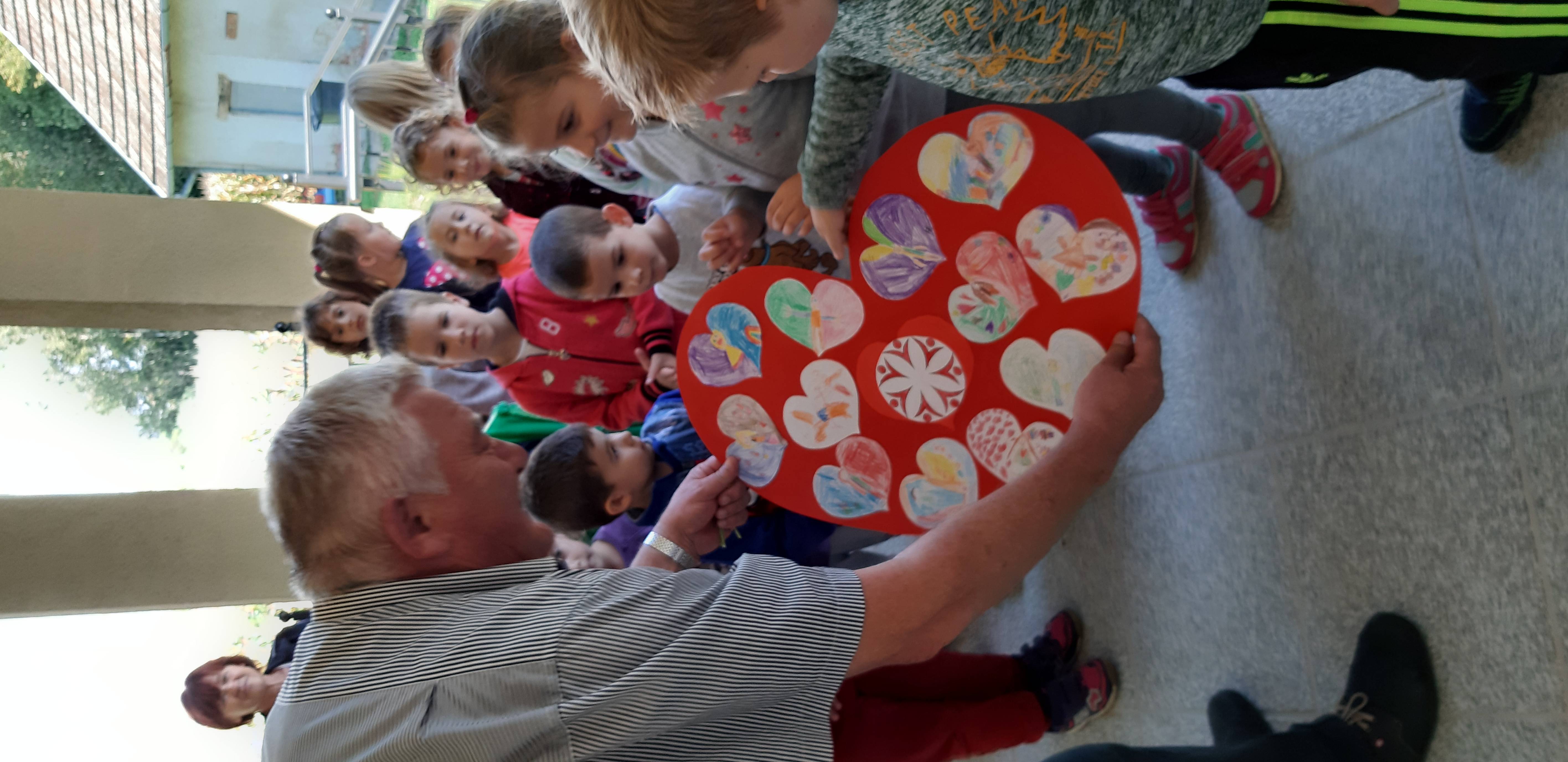 A bolodogságóra előtti héten megtudtuk, hogy a nagycsoportos gyermekek színházbérletet kaptak a fenntartó önkormányzattól ajándékba. Ezért úgy gondoltuk, hogy hálánk jeléül köszönet képpen meglepetést készítünk a Polgármester Úrnak. A boldogságóra előtti napon azt az otthoni feladatot kapták a gyerekek, hogy édesanyjuk segítségével vágjanak ki egy szívformát, s rajzolják rá magukat, és díszítsék ki.