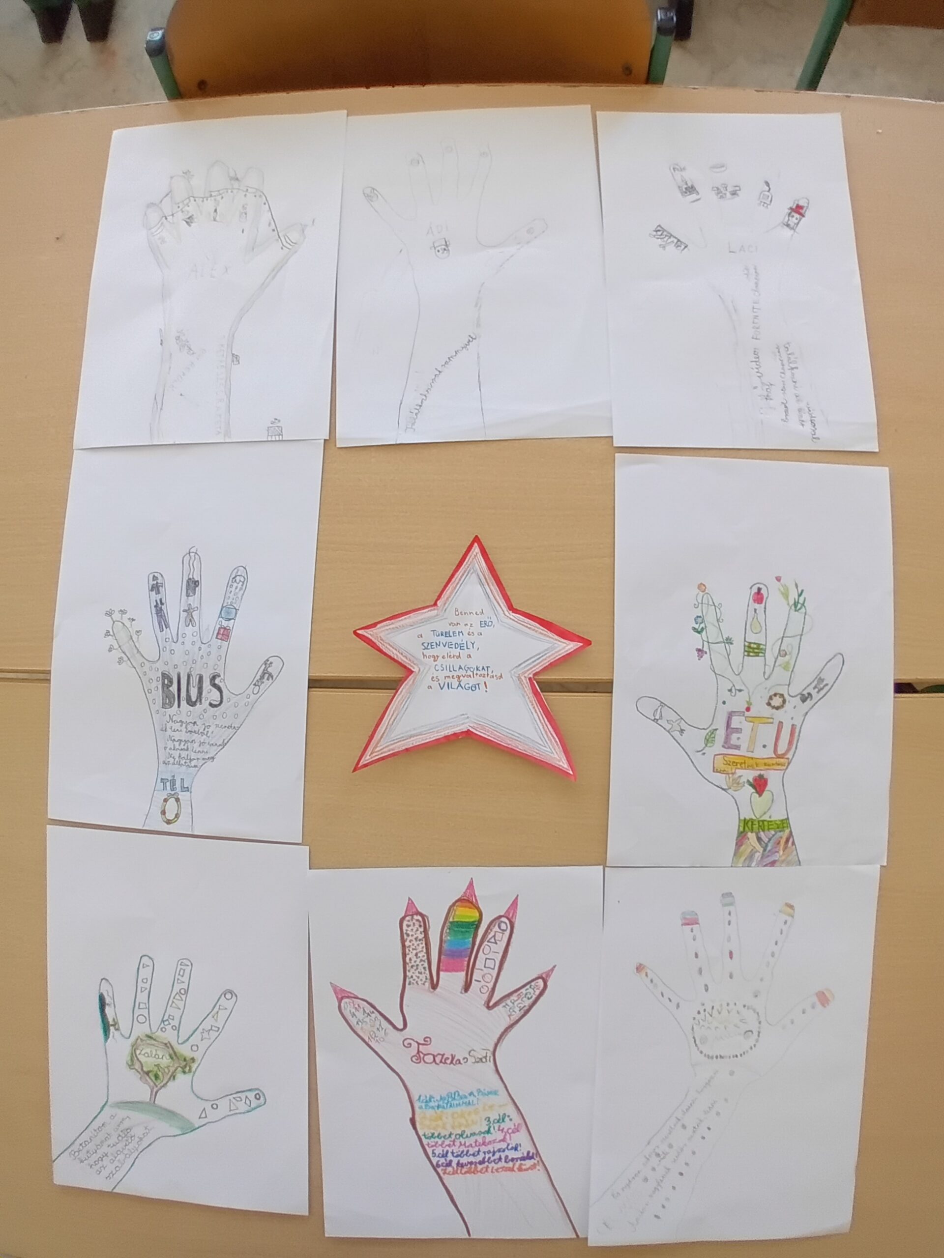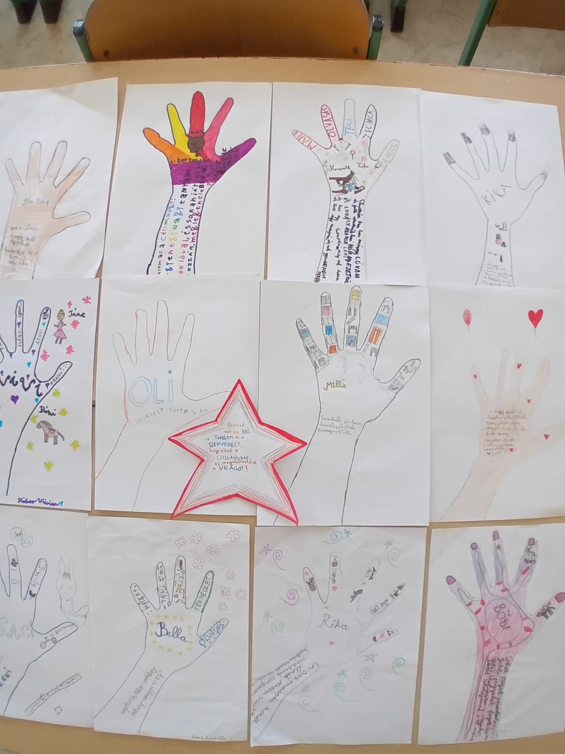 Mindenki átrajzolta a kezét, karját, és beleírta az egyéni céljait. Olyan motívumokkal díszítették a rajzot, ami rájuk jellemző a legjobban.