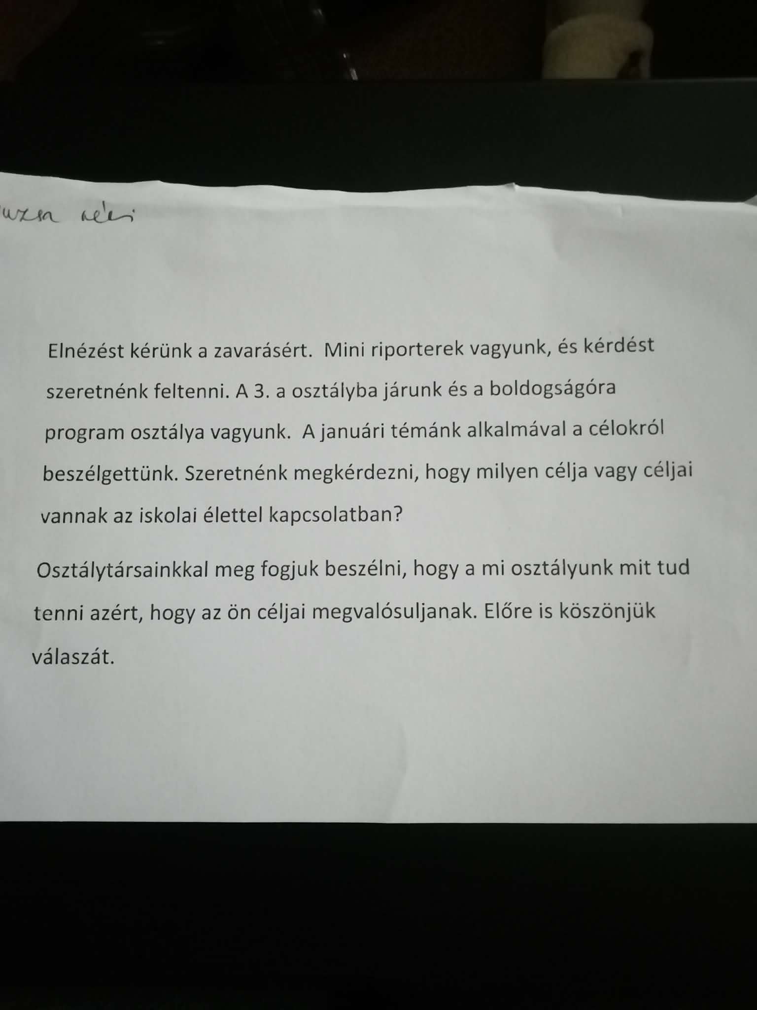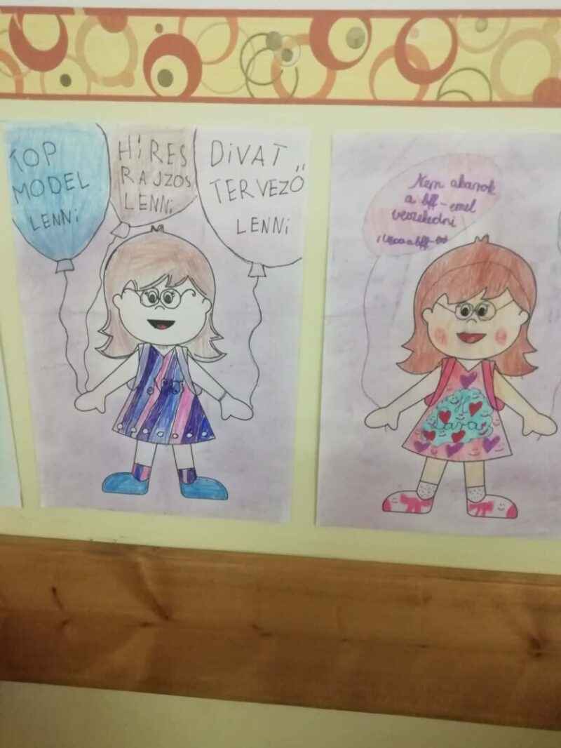Majd mini riporterek lettek, s bejárták az iskolát. Eljutottak az igazgatásra, a titkárságra, a gazdasági irodába, portára, büfébe, konyhára. Megkérdezték az ott dolgozókat, hogy nekik milyen iskolai céljaik vannak. A riporterek elmondása után elhelyeztük a mi közösségünket, hogy hol van a szerepünk, mely célok elérését tudjuk előremozdítani. Nagyon klassz hónap volt, nagyon élték a gyerekek.