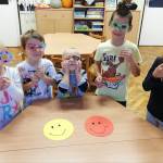 Az Ibolya csoport vegyes életkorú gyerekeivel megvalósítottuk a nevelési év második boldogságóráját, ami az optimizmusról szólt. A feldolgozásban nagy segítségünkre volt a Boldogságóra kézikönyv e témájával foglalkozó fejezete. Megismertettük a gyerekeket Tódi Törpe történetével. Varázsszemüvegeket készítettünk, közben kötetlenül beszélgettünk arról, mi is az az optimizmus. Meghallgattuk a hónap dalát, ami nagyon tetszett a gyerekeknek, mert egy mozgalmas, jókedvre derítő zeneszám. Többször is kérték, hogy játsszuk le nekik. A beszélgetőkör során ismerkedtünk az optimizmus-vidám és a pesszimizmus-szomorú fogalmával. Mindenki felvehette a varázsszemüveget. Elmesélték, mi az a jó dolog, amit látnak a szemüvegen keresztül. A negatívabb dolgokat jobbá varázsoltuk, vagyis szebbé tettük világunkat.